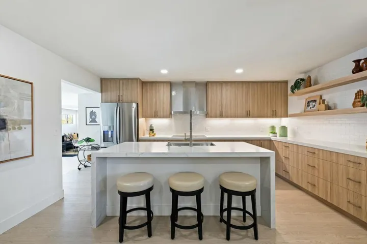 Price reduced by over $400,000 from the original listing–what a deal for this beautifully renovated home!Welcome to this spacious 2,499 sq ft property, ideally located within walking distance from El Paseo. Thoughtfully remodeled from top to bottom, this 4-bedroom, 3-bathroom home sits on an expansive 13,939 sq ft lot and blends modern design with everyday comfort. Inside, you’ll find an open-concept layout that’s both stylish and functional. Luxury vinyl plank flooring and recessed lighting run throughout the home, creating a clean, contemporary feel. The upgraded kitchen is a standout, complete with stainless steel appliances, quartz countertops, and sleek cabinetry–perfect for any home chef. The oversized primary suite offers a peaceful retreat, featuring a sitting area and a fully updated en-suite with a large shower and dual vanities. A separate family room with a built-in bar opens to the backyard, where stunning south- and west-facing mountain views steal the show. The outdoor space is made for entertaining, with a sparkling pool and spa surrounded by plenty of room to relax or host guests. Other features include a two-car garage and an in-home laundry for convenience. This home isn’t just move-in ready–it’s a lifestyle upgrade. Come see for yourself and imagine making it yours!