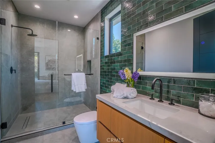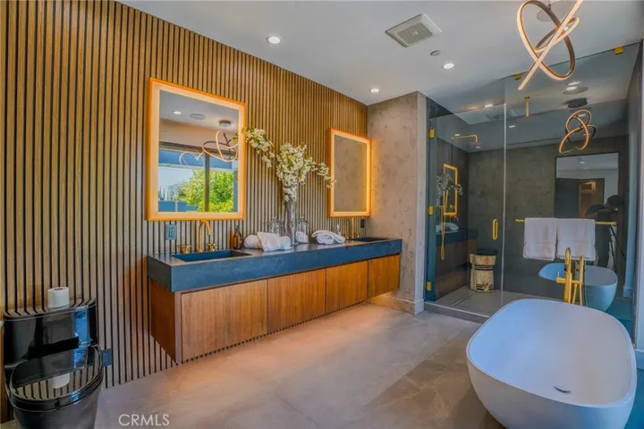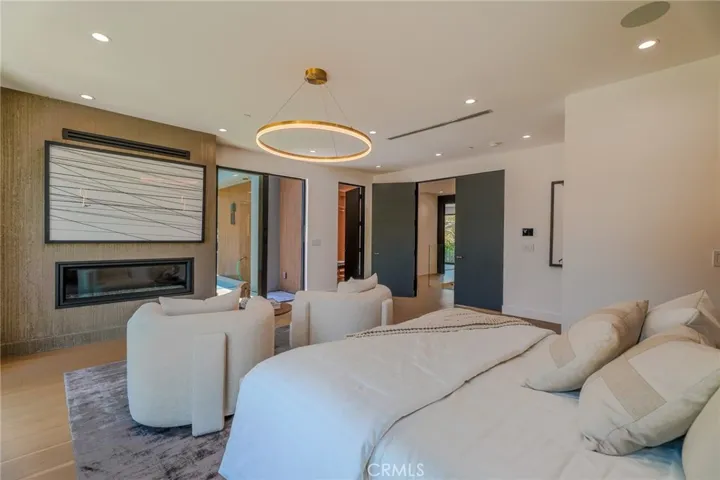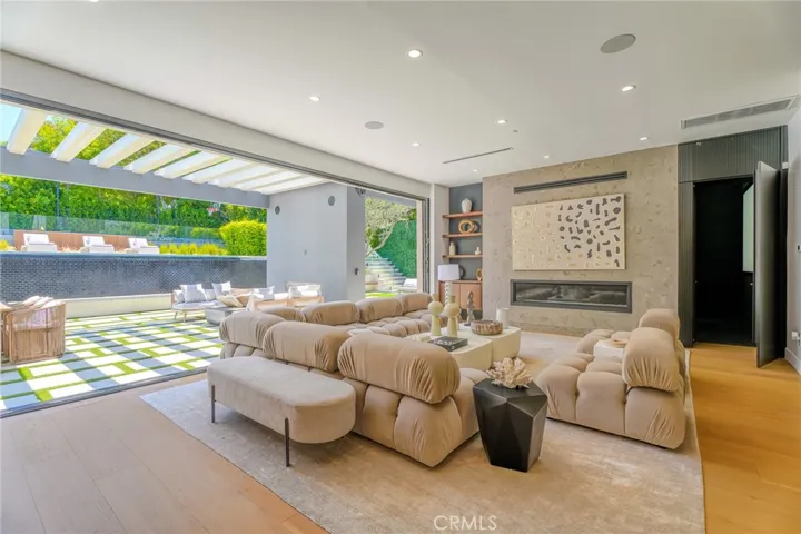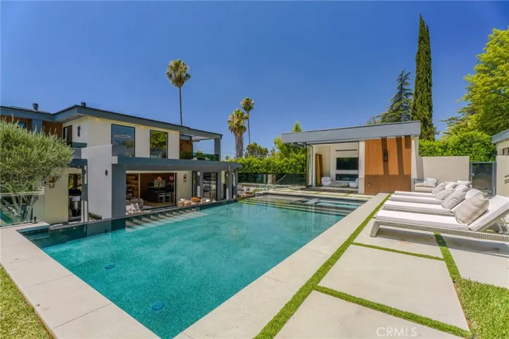 Incredible Private Estate located in one of the most sought-after neighborhoods in Tarzana, South of the Boulevard! This stunning, gated estate seamlessly blends modern design with luxurious living. Surrounded by meticulously landscaped grounds, the residence offers 5 bedrooms, 7 bathrooms, a study, a media room, and an array of high-end amenities perfect for both relaxation and entertaining. The open-concept floor plan ensures a smooth flow between living spaces, ideal for hosting everything from intimate gatherings to large-scale events. The chef’s kitchen is a culinary haven, featuring premium Wolf and Sub-Zero appliances, a spacious center island, high-end countertops, ample cabinet storage, walk-in pantry, and a built-in Miele coffee maker. The serene primary suite offers a private retreat with a cozy fireplace, a spa-inspired bathroom, an expansive walk-in closet, and two private balconies. Additional highlights include 6 fireplaces throughout the home, a Crestron smart home system, Fleetwood pocket doors, integrated indoor/outdoor speakers, and top-tier security features with cameras. Outdoors, the estate is equally stunning, with lush gardens, a reverse infinity pool and spa, a pool house (with bathroom), and a fully equipped outdoor kitchen with a 5-burner stove, BBQ, and beverage fridge. The covered patio has dual fireplaces that creates a perfect space for year-round enjoyment. For active lifestyles, the property includes a lighted sport court with basketball hoop and putting green, offering plenty of options for recreation. The detached garage accommodates luxury vehicles, parking for tour buses/RVs, with additional onsite parking for 10+ cars. Solar panels and underground utilities promote sustainability, enhancing the estate’s eco-friendly appeal. Offering unmatched privacy, comfort, and sophistication, this estate is the ultimate sanctuary for those seeking an unparalleled Southern California living experience.