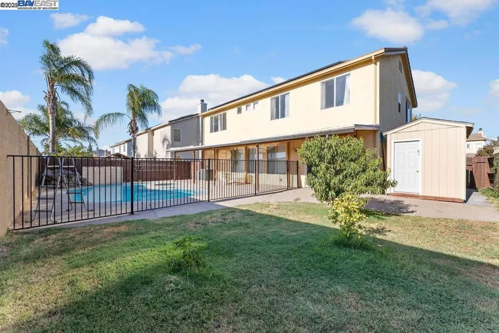 Welcome to this spacious and beautifully maintained home, featuring 5 bedrooms, 2.5 bathrooms, and a versatile loft/den. Move-in ready and filled with natural light, this property offers the perfect blend of comfort, style, and functionality. Step into a bright, open entryway that leads past a formal dining area and into a generously sized great room with a cozy fireplace—seamlessly connected to a chef’s kitchen with stainless steel appliances and refinished cabinetry. Enjoy tasteful upgrades throughout, including wood flooring and bronze-finished lighting fixtures that add a custom touch. The gated pool and spa create a private retreat, complemented by a shaded back porch, spacious concrete patio, and side yard—ideal for entertaining. The Tesla solar system is fully paid off, providing long-term energy savings. Located in a desirable neighborhood near Kaiser Permanente, Costco, schools, shopping, and major highways, this home offers both convenience and an exceptional lifestyle.
