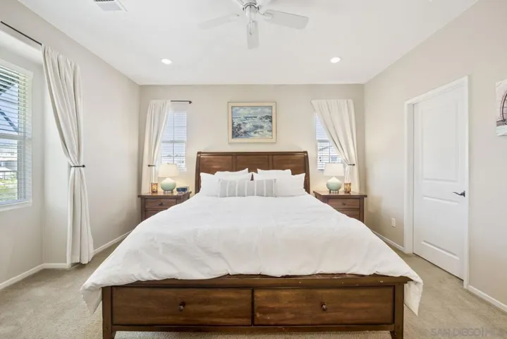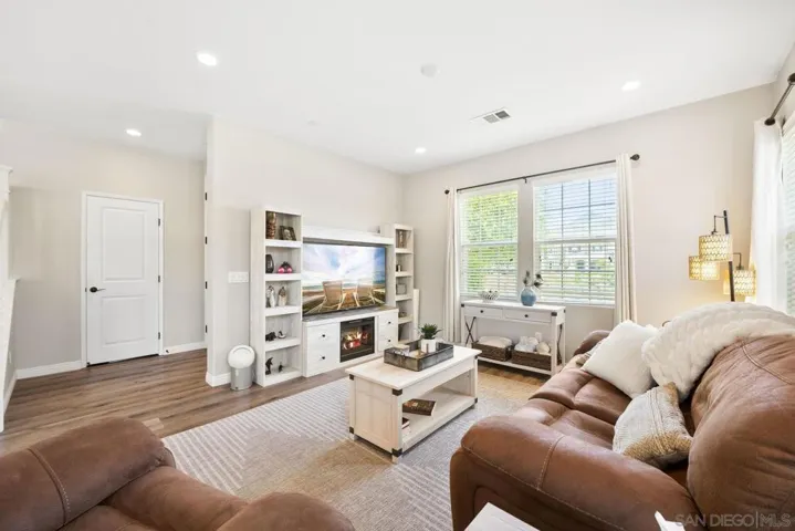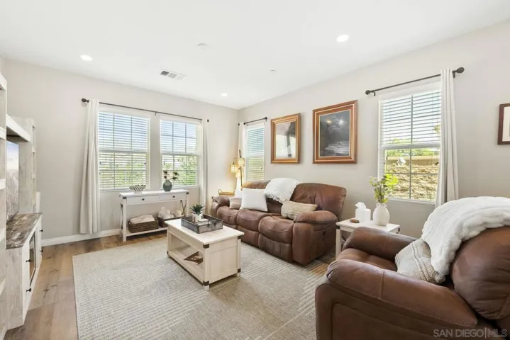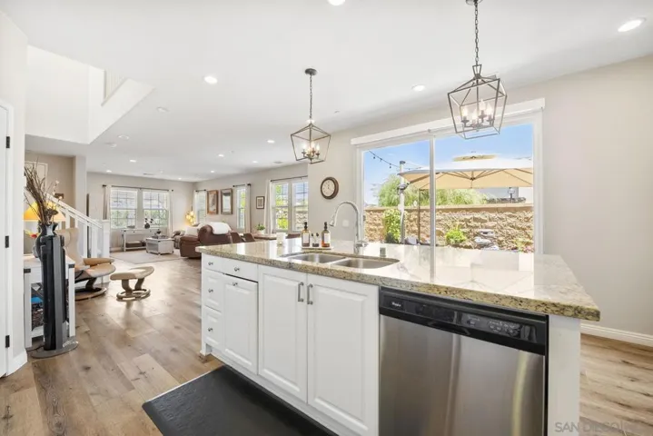 This beautiful Harmony Grove home is on a rare and highly coveted prime corner lot with amazing views. Full of upgrades throughout, this 3-bedroom 2.5 bath features a gourmet chef’s kitchen that includes granite countertops, stainless steel appliances, double ovens, pantry & a spacious island – perfect for entertaining! Open floor plan is filled with natural light. Upstairs laundry room. Dual paned windows. Tankless water heater. Private backyard oasis. Community Pool, club house, dog park, walking/hiking trails and parks. This unique location within the neighborhood gives you no homes in front or the entire north side. Enjoy the panoramic views of rolling hills and mountains all around with no one blocking you.Too many upgrades to mention. Front porch seating area. Private alley access to garage. Harmony Grove Village, a highly sought after master planned community, features resort-style amenities with large swimming pool, spa, wading pool and splash pad plus BBQ areas, shade structures and playground. Scenic walking, biking, and equestrian trails, the picturesque 4th of July Park, Huntley Park, a private dog park, and numerous community parks equipped with picnic areas and playgrounds. Convenient Location to Freeway Access, Parks, Wineries, Stone Brewery, Golf courses, Restaurants, North County Fair Mall, San Diego Zoo Safari Park and many other Destinations. This is a Must See!