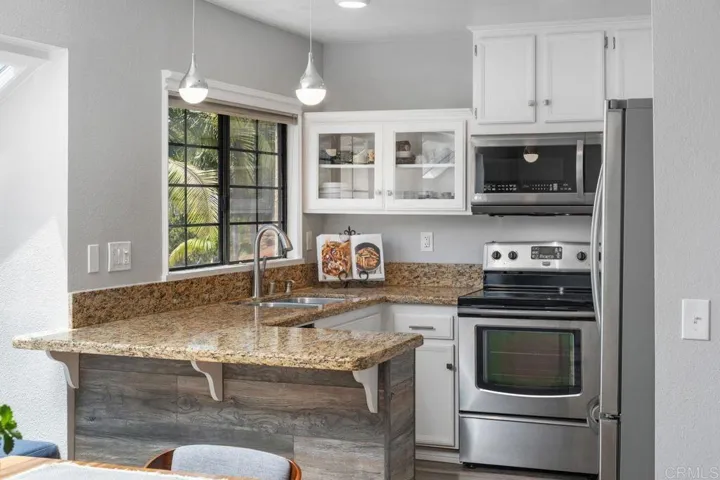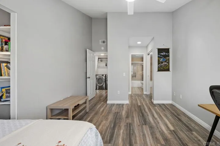Immaculate turnkey-2bd/2bth Spacious condo in La Costa with wooden floor throughout the entire home, oversized kitchen/dining room with ample light, vaulted ceilings 2nd floor unit. Double master-suites, one with walk in closet and its own sliding door to the balcony! Granite countertops on all kitchen and bath, 2 parkings, fireplace, A/C and newer water-heater! Cool oceanbreeze and bright natural light with a touch of birds chirping sound make this home a relaxing home to come back to! Community pool, jacuzzi, tennis courts, and HOA fee includes water, sewer, trash and structural insurance. Award Winning San Dieguito Union School District. Situated in one of the highest points of La Costa Hills!