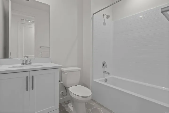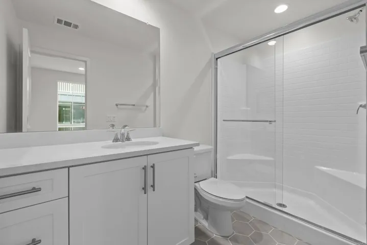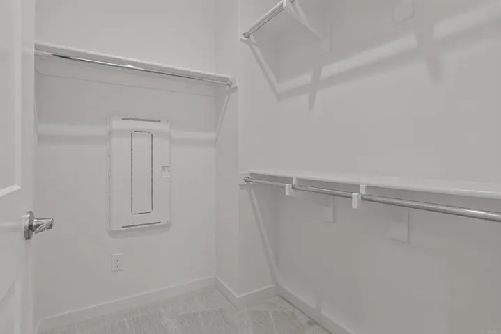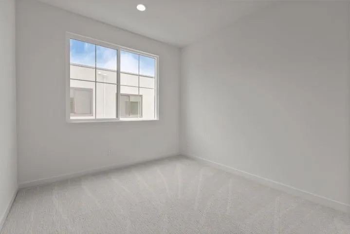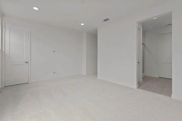 This stunning, three-story home showcases an open floor plan with 9-ft. ceilings and luxury vinyl plank flooring. Upstairs, the kitchen boasts Shaker-style cabinets, quartz countertops and Wolf® and Cove® stainless steel appliances. Enjoy the outdoors on the balcony. The third-floor primary suite features plush carpeting, two walk-in closets and a connecting bath that offers quartz countertop and a shower with custom tile surround. Additional highlights of this all-electric home include a solar energy system, LED lighting, electric charging station pre-wiring and smart thermostat.