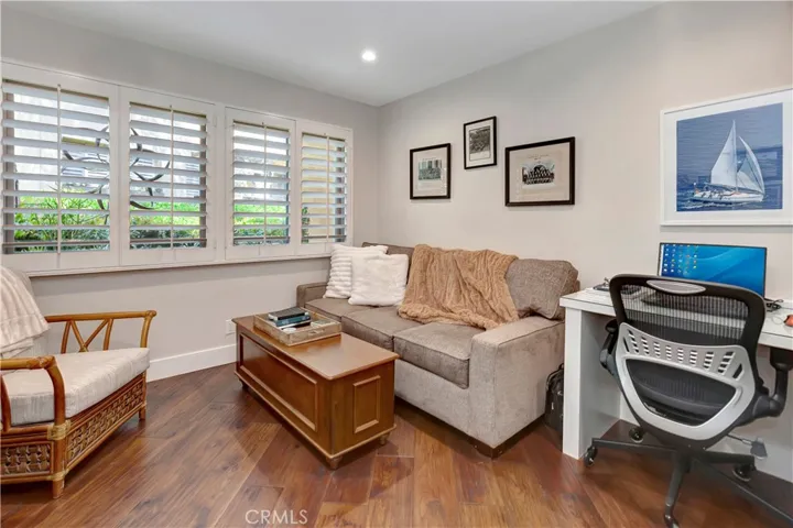 Gorgeous Lake views of Big Canyon Golf Course await you at this beautifully remodeled 2.5 bedroom, 2.5-bath condo in the exclusive Big Canyon Villas. Located in a cul de sac backed up to the prestigious golf course, spanning 1,801 sq ft, this home features wide plank pecan hardwood floors, soaring 16′ beamed ceilings, and a custom precast electric fireplace as an elegant focal point in the sun filled family room. The entry level also includes a versatile office/den/bedroom with built in office that can also be used as a guest bedroom and a 1/2 bath with pedestal sink and a chic sunset color subway tile accent wall. The gourmet kitchen is a culinary showpiece—featuring quartz countertops, classic white shaker cabinets, and stainless-steel appliances. A kitchen breakfast bar seamlessly connects the space to the dining area, fostering effortless flow for everyday meals and entertaining.