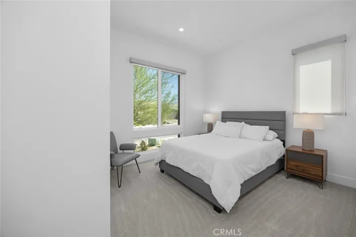 Step through the private gated courtyard into your own desert oasis—complete with a sparkling pool and spacious patio, ideal for indoor-outdoor living and entertaining. Inside, enjoy soaring 12-foot ceilings, dramatic clerestory windows, and a light-filled open floor plan that seamlessly connects the great room, dining area, and gourmet kitchen. The chef’s kitchen boasts an oversized island, high-end cabinetry, premium Bertazzoni stainless steel appliances, and a stylish pass-through folding window to the outdoor pool bar. A flexible office/den space opens directly to the pool, perfect for remote work or relaxation. Each bedroom features a private en-suite bath, offering comfort and privacy for residents and guests alike.