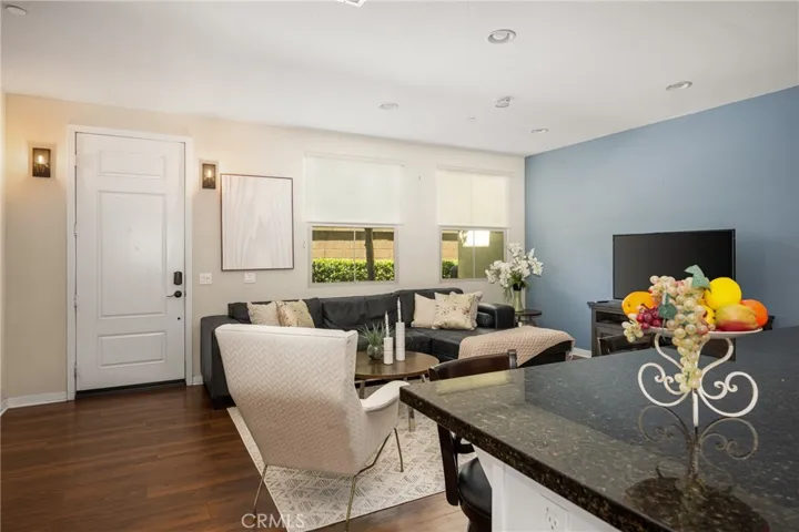 Welcome to this beautifully upgraded end-unit Smart Condo with townhome-like features, perfectly situated in the sought-after Agave community of Portola Springs. This residence offers refined California living on a quiet, tree-lined street, with a layout that blends comfort, style, and function. The open-concept main living space is filled with natural light, featuring rich hardwood floors, custom window treatments, and an inviting ambiance. The gourmet kitchen boasts granite countertops, high-end Bespoke Samsung appliances, a large center island, and abundant cabinetry—perfect for culinary enthusiasts and entertaining alike. A downstairs bedroom and full bath provide flexibility for guests or a home office, while upstairs, the spacious primary suite offers a generous walk-in closet, dual vanities, and a sleek walk-in shower. Additional highlights include Smart Home technology, an EV charger, central heating and cooling, in-unit laundry, and an attached 2-car garage. Enjoy a private gated patio for outdoor dining or relaxation, and take advantage of the community’s resort-style amenities—pools, parks, and scenic trails. Located minutes from the Great Park, Irvine Spectrum, Woodbury Town Center, and award-winning Irvine Unified schools, this home delivers the perfect balance of luxury, location, and lifestyle.