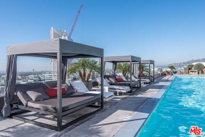 Luxury Living at the 10th floor of the W Residences Hollywood Designer 1BD + 2BA with a 200 Square 200-square-foot balcony. Experience world-class living in this impeccably remodeled and fully upgraded residence at the iconic W Residences Hollywood. Spanning nearly 1,400 square feet of interior space plus a rare 200-square-foot private terrace, this one-of-a-kind, south-facing 1-bedroom, 2-bath condo offers the ultimate in comfort, style, and modern convenience. Bathed in natural light, the open-concept living space is an entertainer’s dream, featuring custom tilework, sleek sliding doors, an integrated sound system, and floor-to-ceiling windows with sunset and Century City views. The chef’s kitchen is outfitted with top-of-the-line appliances, including a Sub-Zero refrigerator, wine cooler, Kuppersbusch range and dishwasher, and a premium Japanese water purification system. The expansive primary suite includes direct terrace access, a luxurious spa-style bathroom with dual vanities, a soaking tub, a separate walk-in shower, and a massive built-out walk-in closet. Enjoy unparalleled, resort-style amenities including a private rooftop with a 1/2-acre sky deck featuring a lap pool, spa, fire pits, BBQ areas, wet bars, and 360 views of the Hollywood Sign, Griffith Observatory, and the LA skyline. Additional features include a state-of-the-art fitness center, screening room, dog park, and access to 24-hour valet, concierge, room service, housekeeping, and security. Residents receive exclusive 20% discounts on W Hotel services, including dining, and more. Ideally located just steps from the Pantages Theatre, Trader Joe’s, Equinox, and Hollywood’s best dining and entertainment. Includes one parking space