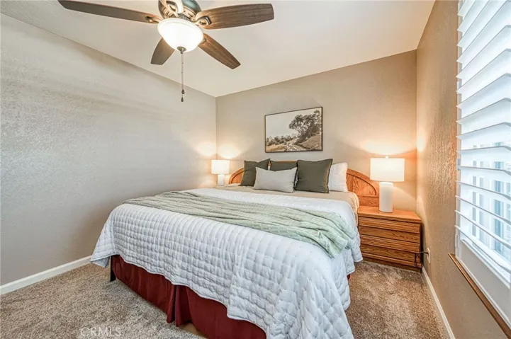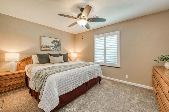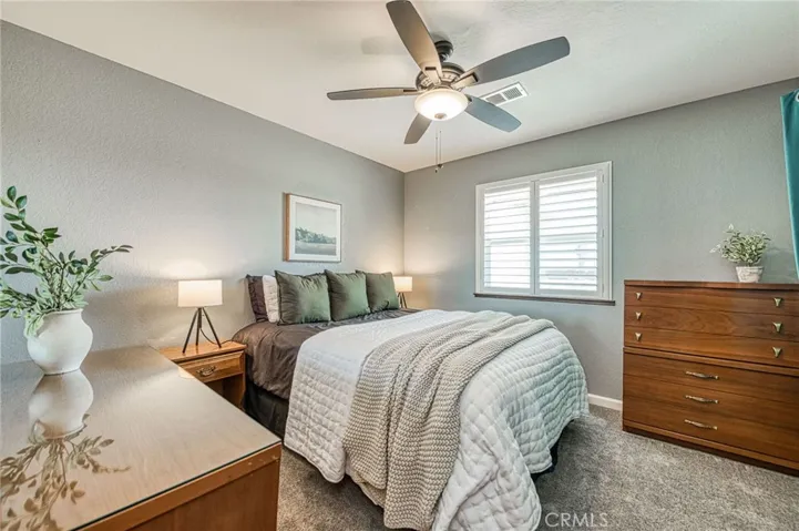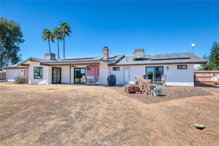 The home features new windows completed in 2024, owned solar with no true-up history, a new whole house fan, automatic blinds, and new carpet throughout. The circular driveway was fully redone with reinforced concrete on one side to support heavy trucks. Exterior upgrades include two new garage doors (2025), a new fence and gate (2025), fresh front landscaping (2020), and exterior paint (2024). A detached shed provides additional storage. This turnkey property blends comfort, efficiency, and usable space in a highly desirable Clovis setting.