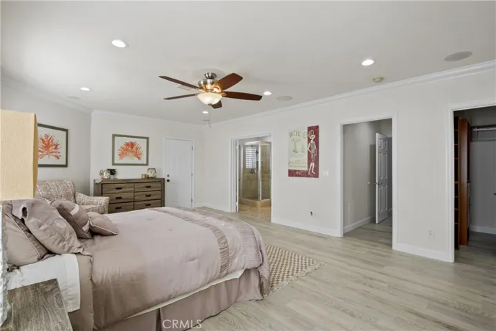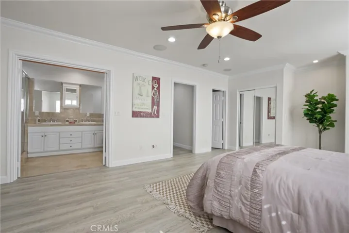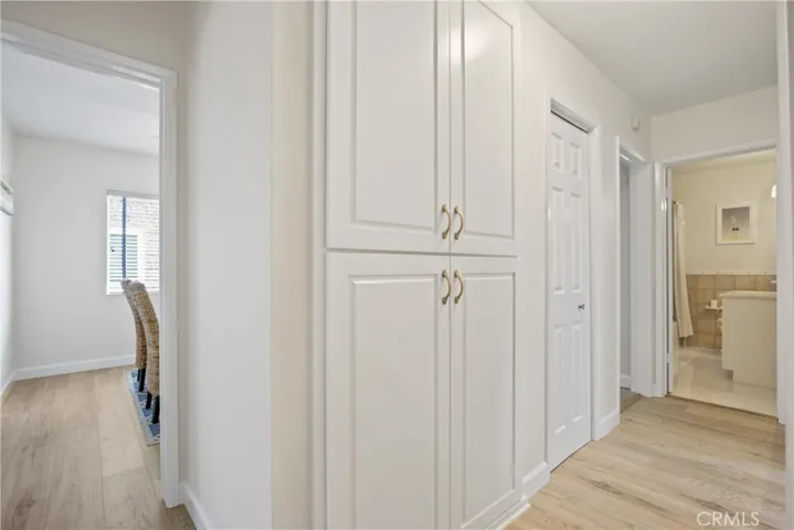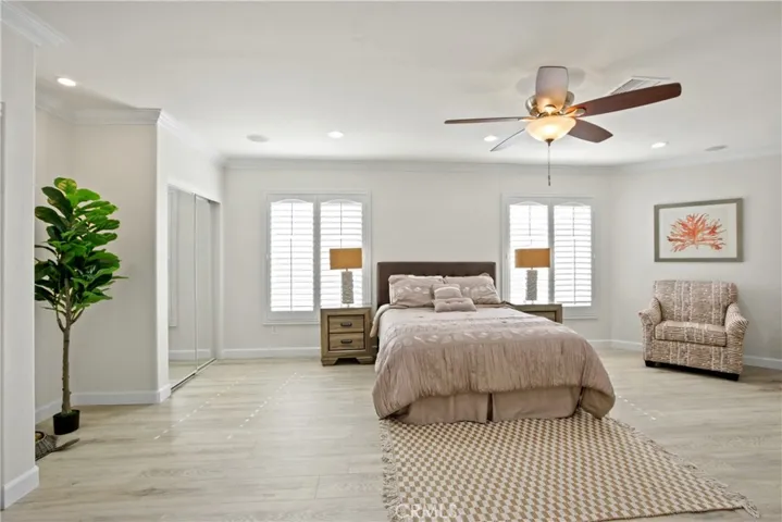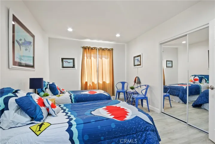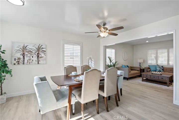 Nestled on a peaceful, tree-lined street, this beautifully updated 5-bedroom, 3-bath home offers comfort, style, and space in the sought-after Lakewood Mutuals neighborhood. Step inside to find new modern flooring, fresh interior and exterior paint, smooth ceilings, and custom wood shutters that add timeless charm. The open layout features a welcoming living room, a large dining area, and a bright kitchen with white cabinetry, new quartz countertops & stainless steel appliances, and a walk-in pantry. The main level includes three bedrooms and two full baths, including a spacious primary suite with three closets (one walk-in) and a spa-like bath with dual sinks, walk-in shower, and jetted tub. Upstairs features two additional bedrooms and a full bath with walk-in shower. The backyard is a private oasis with pavers that match seamlessly with the driveway making an expansive area that is perfect for entertaining day or night with ambient lighting, turf play area, and relaxing swim spa. Additional features include central heat and A/C, indoor laundry, and parking for up to 6 cars with a detached 2-car garage and long driveway. Close to Lakewood Country Club, Bixby Knolls, and Long Beach Exchange (LBX), this home offers both tranquility and prime access to shopping, dining, and entertainment.