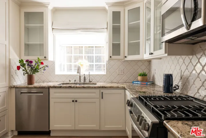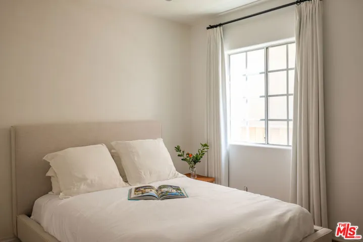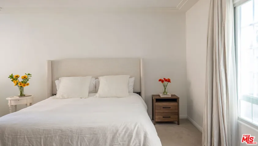 This beautifully maintained 2 bedroom, 2 bathroom condo offers 1,472 square feet of comfortable, private living in a boutique 8 unit building. With no shared walls and a second floor location in an elevator served structure, the unit lives more like a standalone home. Each bedroom is well sized with generous storage space. Primary bathroom features dual sinks, bath tub spa, and freestanding shower. Both bathrooms have white carrara marble countertops, floors, and showers. Features include a private front patio, a dedicated doggy patio with BBQ area, and in unit laundry with full size washer and dryer. A bonus nook is perfect for a home office or Peloton setup. The spacious kitchen offers stainless steel appliances and generous cabinet space. New dishwasher, range, and HVAC system were all installed in 2024. Gas meters replaced in 2023. The HOA covers building, water and sewer, common gas and electricity, trash, landscaping, elevator maintenance, and more – making ownership simple and low maintenance ownership. Ideally located between Beverly Hills and West Hollywood, in one of LA’s most desirable and walkable neighborhoods. This home is move in ready and available furnished.