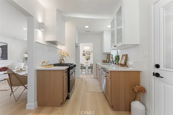 Perched with poise in the hills of Mount Washington, this beautifully updated 2 Bedroom, 1.5 bath single-level residence boasting 1410 sq ft—complete with a detached 218 sq ft bonus room perfect for a home office, art studio, or serene yoga retreat—offers the perfect blend of charm and modern refinement. Step into a warm and inviting foyer with abundant built-in storage that immediately sets the tone for the thoughtfully designed interiors. The sun-drenched living room features a stylish fireplace and seamlessly connects to the dining area, where sliding glass doors frame panoramic views—creating an ideal setting for entertaining or simply unwinding in nature’s embrace. The kitchen is a showstopper, boasting Shaker cabinetry, designer hardware, custom tile backsplash, and stainless-steel appliances—perfectly balancing beauty and functionality. Throughout the home, new flooring, recessed lighting, and sleek contemporary finishes elevate the airy, open-concept layout. Step outside to an expansive rear patio—an idyllic space for al fresco dining, evening cocktails, or soaking up the golden-hour glow over the canyon. Both spacious bedrooms offer peaceful privacy, making this home a true retreat from the city buzz. Situated on a tranquil street in one of Northeast LA’s most coveted enclaves, you’re just moments away from the acclaimed Mt. Washington Elementary School, scenic parks, cultural gems, and vibrant local dining.