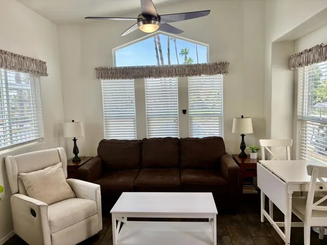 Welcome to the hidden Gem of Sky Valley Resort! This 2019 Cavco Park Model is being offered Turnkey Furnished! Super Cute & Clean! Nice spacious Kitchen with lots of cabinets for storage. The Bathroom has a walk in Shower. Nice cozy Bedroom with mirrored closet doors. This property is steps away from the many Pool & Spas. The back Patio has a BBQ, and sitting area.Sky Valley Resort Offers many Great amenities including 13 Hot Mineral Pools & Spa’s, Fitness Center, Sauna, Tennis Courts, Pickle Ball Courts, Cafe, Chapel, & a Doggie Park. As a resident you can Golf at the Sister Park, Caliente Springs, which is only a couple miles down the road. This Resort is a Gated, Family Park. The Property has Space Rent and is not on Leased or Fee land. The Space Rent is $820./month Short Term Rentals are Allowed with Restrictions.This Property is DMV Registered and doesn’t have Property Taxes. You can get Financing on Park Models. Come out and Explore the Desert Lifestyle! Palm Springs is just a short 15-20 minute drive. Seller will pay for the new Buyers 1st month’s space rent!