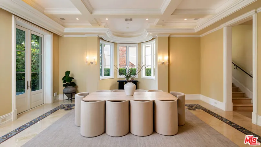 Completed in 2017, this newly furnished masterpiece blends timeless European architectural influences with the most advanced modern comforts, including full Crestron smart home integration. Spanning approximately 12,000 feet with three expansive levels serviced by an elevator, this 7-bedroom compound (including a separate guest house) features bespoke finishes throughout and is newly outfitted with Restoration Hardware furnishings. At the heart of the home is an oversized chef’s kitchen with top-of-the-line Miele, Wolf, and Sub-Zero appliances including a double-sided refrigerator, four freezers, 8-burner range, dual ovens, and built-in espresso machine centered around a massive island ideal for culinary creativity and social gatherings. Unwind in the spectacular diamond-quilted leather theater with 14+ plush seats and state-of-the-art audiovisual technology. Entertain effortlessly with indoor-outdoor flow, outdoor poolside shower and bathroom, barbecue area, and multiple balconies. Indulge in spa-like amenities including a rare indoor saltwater pool with swim current jets, rainfall shower, and both dry and wet saunas. A custom wine cellar, lavish primary suite with oversized walk-in closet and jacuzzi, and smart security system with full perimeter cameras, motion detectors, and glass-break sensors complete the experience. Additional features include water softening and reverse osmosis filtration systems, garage parking, and a separate guest house ideal for staff, guests, or a private home office setup. This one-of-a-kind estate is offered fully furnished and move-in ready. Experience luxury living at its finest, in the most prestigious location Beverly Hills has to offer.
