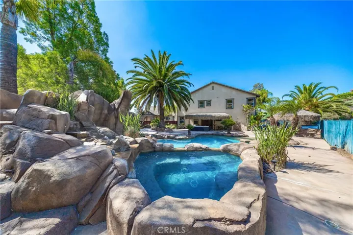 Upstairs, you have your own private gym room and all bedrooms have direct access to a bathroom. The spacious primary suite boasts hillside views, two walk-in closets (one with built-in organizers) and a vanity area, plus a travertine-finished bath with separate shower, tub and dual sinks. Outside is your private oasis—no rear neighbor—complete with pool & spa, waterfall and slide, outdoor shower, Outdoor built-in BBQ kitchen area with granite counters , and an outdoor fireplace for year-round gatherings. A 4-car garage and bug driveway you will have plenty of space for your cars or toys. Fresh interior paint, close to an award-winning elementary school & Vista Murrieta High School, 215/15 freeways and everyday amenities—this home is the total package.