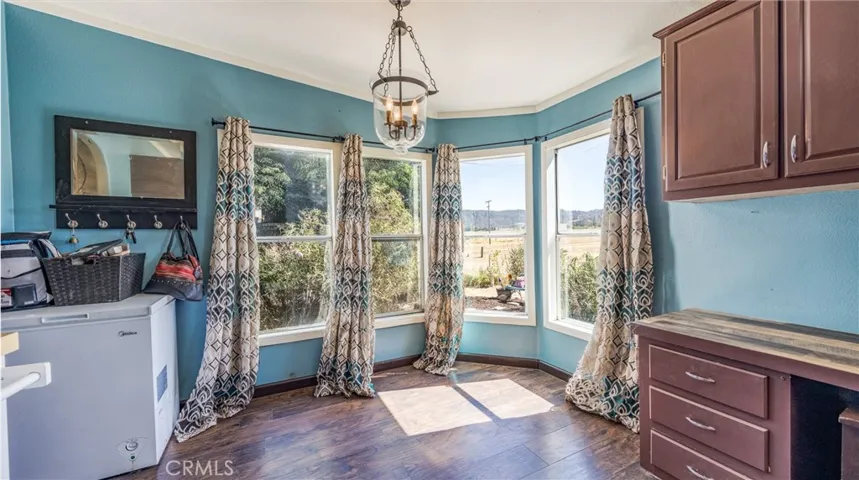 French doors open to a custom deck with mountain and open-sky views. The property includes a barn with utilities, suitable for horses, livestock, equipment storage, or workshop use. The flat acreage allows ample room for corrals, trailers, RVs, or future structures, including potential ADU or other uses (buyer to verify zoning and permitted uses). Well pump and septic certificates available.