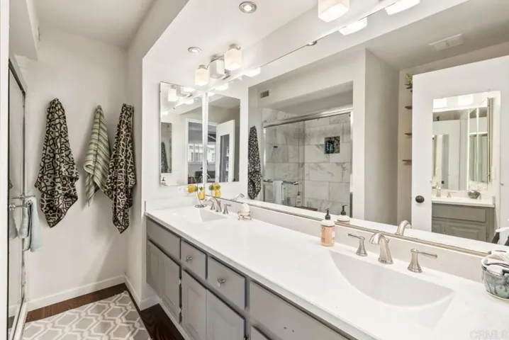 Beautifully updated 2 bedroom, 2.5 bath townhome located in the desirable Golfview Estates community of San Carlos. Offering approximately 1,514 sq ft, this bright two-story home combines open living spaces, modern finishes, and easy access to San Diego’s most popular outdoor destinations. The main level features a light-filled living and dining area with recessed lighting, sleek ironwood stairs, and a cozy fireplace. The updated kitchen includes stainless-steel appliances and modern cabinetry, with a dining space that opens to a west-facing balcony showcasing hillside, golf-course, and city-light views—perfect for watching evening sunsets. Upstairs, two spacious en-suite bedrooms provide comfort and flexibility. The primary suite includes a private balcony and walk-in closet, while the second suite offers ample natural light and generous storage. Bathrooms have been tastefully updated with stylish tile, lighting, and fixtures. Additional highlights include newer flooring throughout, central A/C and heat, dual balconies, an interior laundry area, and direct access from the attached two-car garage. The HOA maintains exterior grounds, roof, and landscaping, and provides access to a sparkling community pool and spa. Excellent location near Mission Trails Regional Park, Cowles Mountain, and Lake Murray for hiking, biking, and outdoor recreation. Nearby retail and dining options include Navajo Shopping Center, San Carlos Village, and Grossmont Center. Local schools such as Green Elementary (~0.6 mi), Pershing Middle (~1.0 mi), and Patrick Henry High (~0.9 mi) are close by. Easy freeway access via SR-125, Jackson Dr, and Navajo Rd connects quickly to Mission Valley, La Mesa, and downtown San Diego. A rare opportunity to own a dual-suite townhome with sunset views, modern updates, and prime access to golf, trails, and city amenities in a well-maintained San Carlos community.
