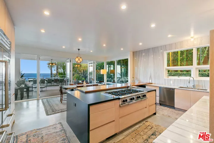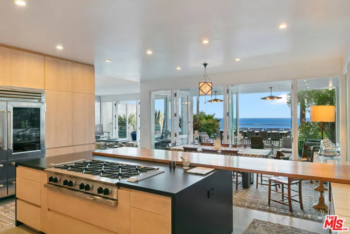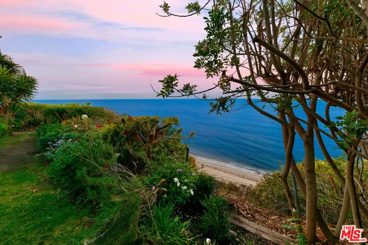 Located above Malibu’s shoreline of Escondido Beach, this gated oceanfront, end-unit, 4-bedroom, 4 bathroom, townhome unites modern design with easygoing coastal living. There is beach access through a private gate from the driveway that leads directly to the beach. Three bedrooms are in the main house and the 4th bedroom is the detached guest house. A private courtyard opens to private pool and sunny lounge area. The entry opens to a double-height great room where floor-to-ceiling glass frames sweeping views of the Pacific, offshore islands, and city lights. French-oak floors, a sleek fireplace, and tailored lighting link the living and dining areas, while the adjacent chef’s kitchen, custom cabinetry, waterfall marble island, and premium appliances, flow to a broad terrace with ample seating for sunning or al-fresco dining, overlooking a landscaped seaside lawn and ocean views. The main level also includes a flexible guest bedroom, office or media lounge with full bath. Upstairs, the ocean-facing primary suite offers a fireplace, sitting nook, wraparound ocean view windows, 2 walk-in closets, and a private deck overlooking the ocean. Two additional ensuite bedrooms share the upper floor, each with their own private bathrooms, and private attached decks. Above the 2-car garage, is a detached guest suite which includes 1-bedroom, and 1-bathroom, an open and well appointed living room and kitchenette, that welcomes guests or perfect for an office or creative workdelivering a refined yet relaxed Malibu retreat.