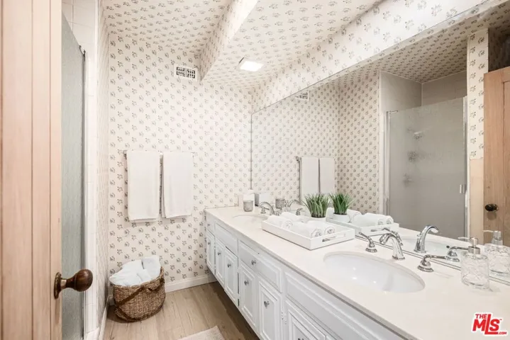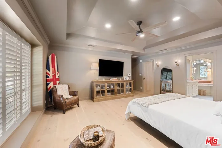Don’t miss this exceptional opportunity! Listed below recent comparable sales in the exclusive and highly coveted Hidden Estates neighborhood of Woodland Hills. Nestled on an expansive 11,000+ sq ft lot, this stunning two-story residence offers over 3,100 sq ft of thoughtfully designed living space that artfully balances elegance, functionality, and warmth. The main floor showcases a beautifully appointed primary suite featuring dual walk-in closets and a luxurious ensuite bath with an oversized steam shower and spa tub – your personal sanctuary after a long day. Bathed with natural light through expansive windows, the home exudes a sense of calm and openness throughout. The inviting living room is anchored by tongue-and-groove wood-clad ceilings and a charming fireplace, creating a cozy ambiance with seamless indoor/outdoor flow. The heart of the home the chef’s kitchen is a showstopper, featuring custom white oak cabinetry, Taj Mahal quartz countertops, professional-grade appliances, and a generous center island perfect for casual dining or entertaining. It opens effortlessly into a warm and welcoming family room, where the second fireplace, adorned with an antique cast iron mantle, offers an ideal setting for gatherings large and small. Upstairs, a spacious loft provides flexible space for a media room, home office, or playroom, accompanied by three additional bedrooms and two full bathrooms. Step outside into a private, lushly landscaped backyard retreat, complete with a sparkling pool, creating a serene setting for relaxation and entertaining. The 3-car garage offers ample storage and convenience, with the third bay uniquely transformed into a theatre/ magic room – a whimsical, versatile space easily converted back if desired. Additional highlights include newer plumbing, Venetian plaster finishes, three separate AC units, solid white oak doors with custom hardware imported from England, and wide plank, Oak engineered flooring, Located just moments from Hidden Hills, this home offers rare character, space, and value in one of the most sought-after neighborhoods in Woodland Hills. If you’re seeking timeless design, privacy, and a true sense of “home,” this is the one.