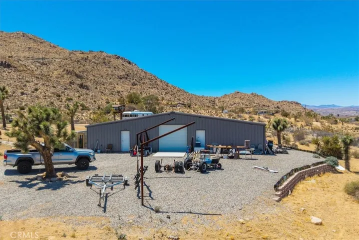 The home features dual-zone comfort conditioning as well as evaporative cooling, powered in part by an 11kW owned solar system. Approximately two acres of the property are fully fenced, making it ideal for privacy, pets, or gardening. This property offers a rare blend of peaceful desert living, artistic inspiration, and practical amenities just minutes from the heart of Joshua Tree and the national park entrance.