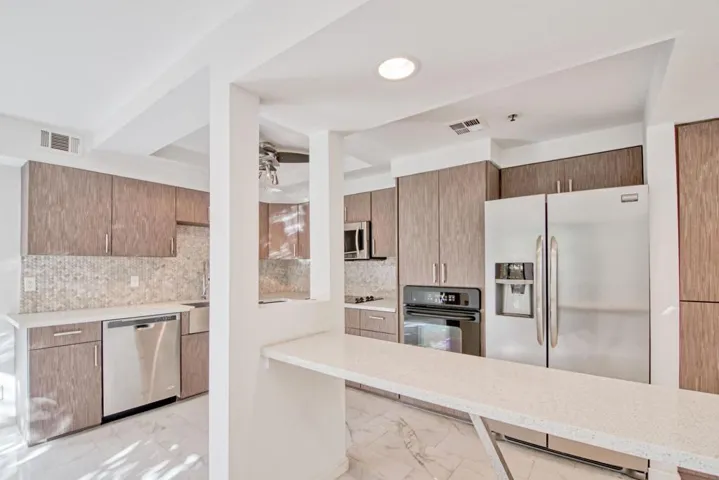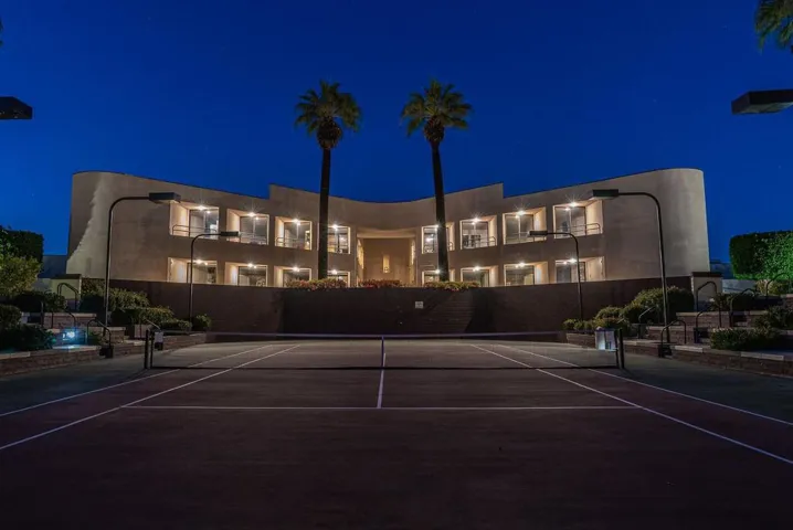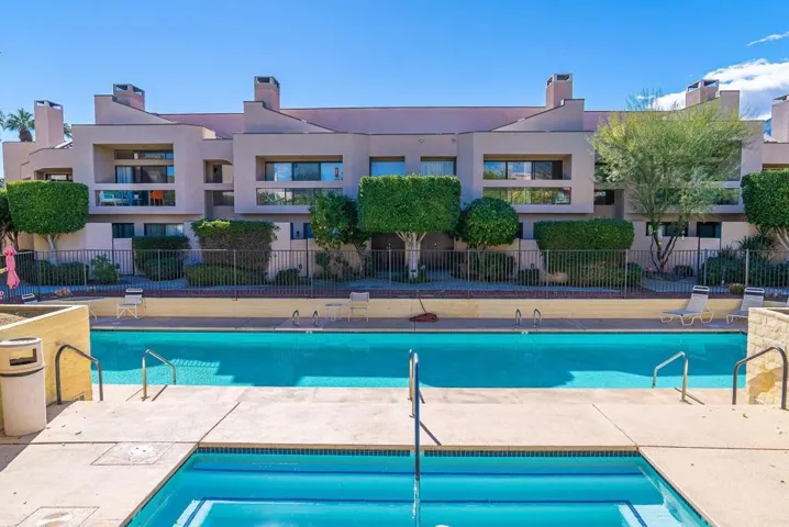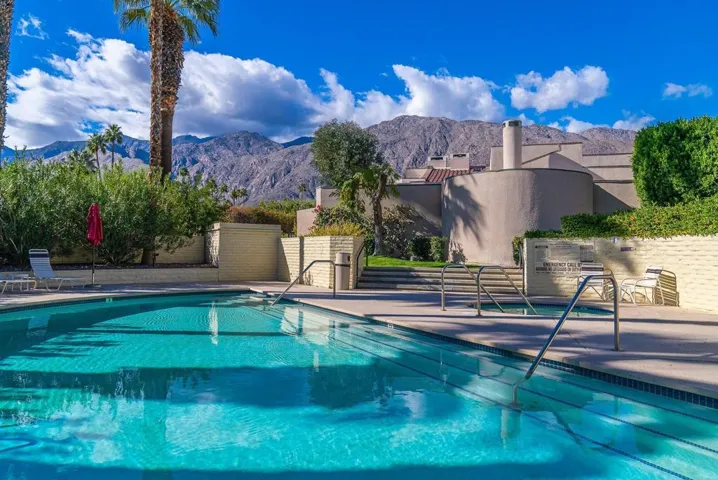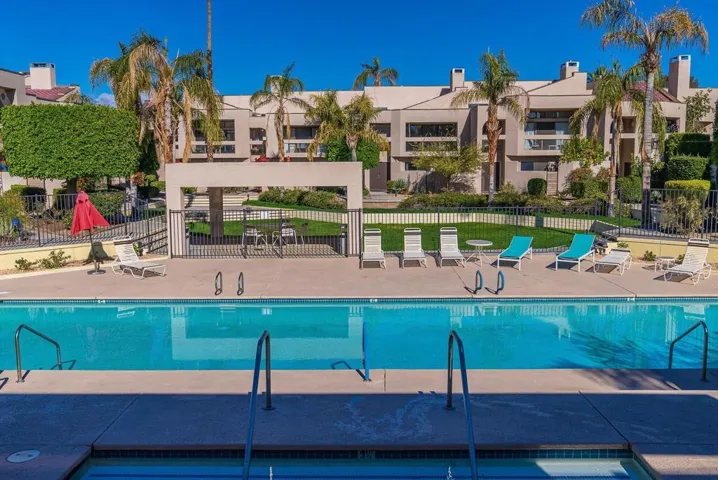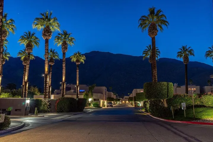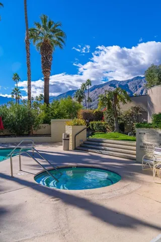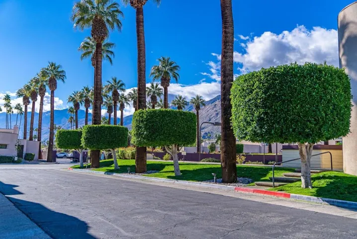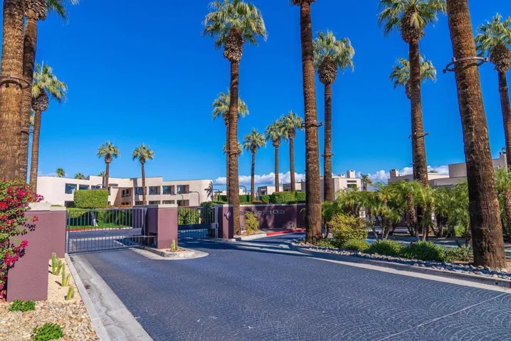 A chic peid a terre in Palm Springs! This lovely loft style 2 bedroom / 2 bath home at Village Racquet Club!! This townhome is 2 stories tall- divided into 4 split floors. With over 1600 square feet of living space, this townhome is located in central Palm Springs just blocks away from the city’s best restaurants and nightlife. The main level living room has a fireplace and vaulted ceilings that open to a private balcony with mountain views. Enjoy the privacy of the quiet terrace level den, dining area, and intimate courtyard. The custom upgraded kitchen features stainless appliances and gas cooktop. The oversized primary suite has an extension, perfect for a home office or reading room, along with two walk-in closets. Freshly painted throughout and ready to move in! The home has a private, oversized one-car garage with laundry. Village Racquet Club has 8 pools and spas, tennis and racquet ball courts, gym, and a clubhouse all within a beautifully landscaped, gated community. Perfect for a 1 month+ vacation rental income property-or- year round home.
