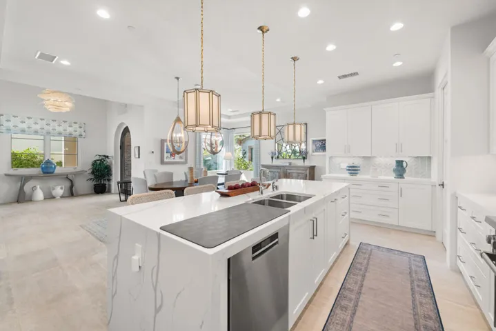 Step into pure luxury! This home has been professionally decorated, with the owner sparing no expense on the latest smart Sonos home technology. It controls all the lights, televisions, and much more, making daily living both convenient and impressive. Kitchen pantry is upgraded with additional refrigeration and stand alone ice maker.Designed with versatility in mind, the open floor plan seamlessly accommodates both lively gatherings and private moments whenever desired. Every corner of this luxurious home features thoughtful upgrades, ensuring comfort and elegance throughout.The backyard offers sweeping views of the 6th fairway and the majestic Chocolate Mountains. A beautifully designed swimming pool invites you to take in the scenery as you relax and swim.Every detail of this exceptional home has been thoughtfully considered, offering unparalleled quality throughout. Guests will enjoy the comfort and seclusion of the beautifully appointed casita, ensuring maximum privacy. A hobby room was added off the garage for your special project. High end garage floor. Truly, this residence stands out as a must-see before considering any other purchase.