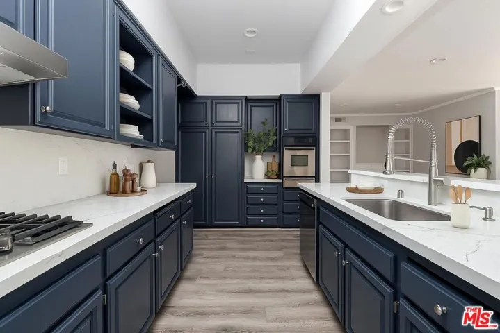 Tastefully remodeled and move-in ready, this top-floor, single-level unit offers refined living with soaring ceilings and an abundance of natural light throughout. The spacious primary suite features a luxurious en-suite bath with a skylight, oval soaking tub, separate shower, and dual oversized walk-in closets. The generous guest bedroom includes its own bathroom, skylight, and ample closet space. An expansive open floor plan flows effortlessly from the wide formal entry into the oversized living room with a fireplace and large patio doors that lead to a private balcony showcasing sweeping mountain and city light views. The beautifully updated kitchen is outfitted with all new appliances, including a wine refrigerator, and opens to a formal dining area, wet bar, and a versatile bonus space ideal for a home office or sitting area. Residents enjoy access to premier building amenities, including a gym and a sparkling pool – perfect for both relaxation and recreation. Flooded with natural light, this serene and stylish residence is situated in a highly coveted building just moments from the Wilshire Corridor, Century City Mall, fine dining, and more. Rarely available, this is a unique opportunity to own a fully renovated top-floor unit in one of Westwood’s most sought-after locations near Century City and Holmby Hills.