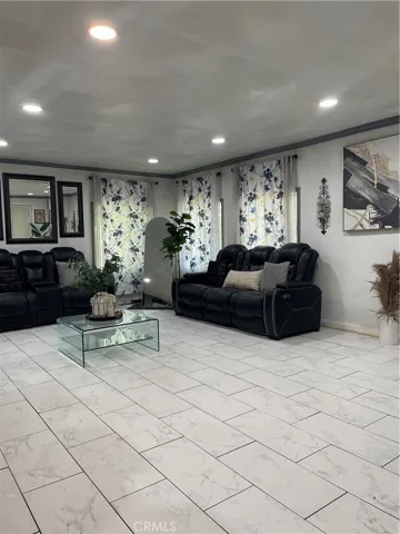 This manufactured home sits on its own lot with a permanent foundation. 2 Bedrooms and 2 Bathrooms plus an additional toy / office room. Open floor concept, family dinning room. Beautiful remodeled kitchen with island, quarts counters. Inside laundry plus central AC. Plenty of shade and fruit trees. Possible ADU and RV access with 2 cover carports. Metal fence with electric remote control opener. Selling as-is!