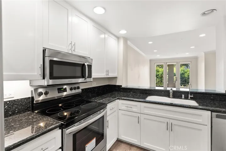 Inside, experience an abundance of natural light and an open floor plan with 9-foot ceilings, crown molding, and exquisite real wood flooring. This large unit includes two bedrooms and two baths, plus a versatile bonus room ideal for an office or a third bedroom. The modern kitchen is equipped with newer cabinets, granite countertops, stainless-steel appliances, new flooring, and a stackable washer and dryer, as well as a breakfast bar for casual dining.