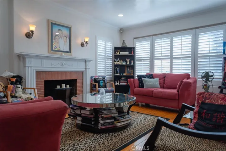 Step into a warm and inviting living space with gleaming hardwood floors, plantation shutters, recessed lighting, crown molding, baseboards, and a cozy wood-burning fireplace. Central heating and air conditioning ensure year-round comfort. Adjacent to the living room, the formal dining area showcases rich maple-stained hardwood flooring and recessed lighting—ideal for hosting dinner parties or family meals. The bright and spacious kitchen boasts 24” x 24” tile flooring, ample cabinetry, and plenty of counter space for all your culinary needs. Just off the kitchen is a sunny laundry room with additional storage. Retreat to the expansive primary bedroom featuring central air, recessed lighting, ceiling fan, and shuttered windows. The en-suite bathroom includes a Jacuzzi soaking tub. A soft lavender accent wall adds a peaceful touch, and there’s also a separate walking clothes closet for added convenience. The second Bedroom is currently used as a home office, this bedroom features hardwood floors, a ceiling fan, recessed lighting, shuttered windows, and central heat and air. Third bedroom is light, bright, and airy, which also includes hardwood flooring, recessed lighting, and a ceiling fan perfect for guests or family members. Enjoy gatherings and quiet moments in the private backyard, designed for entertaining. It includes a paver patio area, concrete block privacy fence. A detached two-car garage provides additional storage with a separate storage room. Additional home features include solar panel on the roof. Don’t miss your opportunity to own this hidden gem in the heart of Leimert Park!
