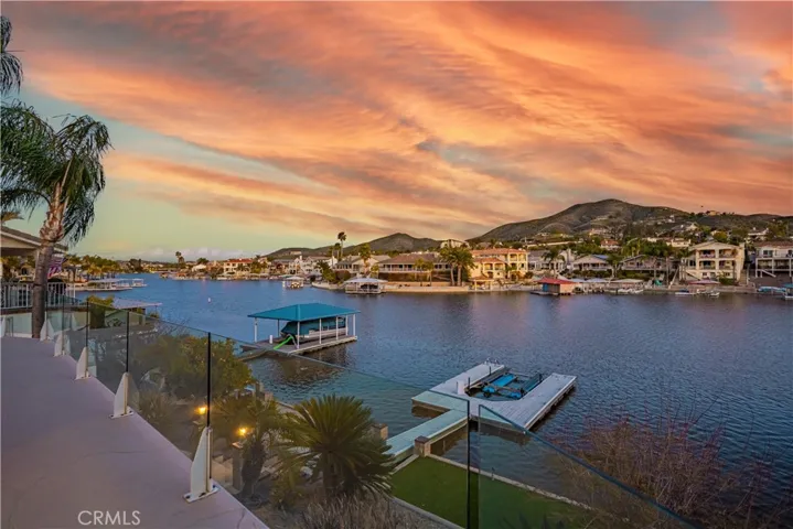 Waterfront “Paradise on East Bay Channel” in Canyon Lake. Enjoy this stunning waterfront location and views!!! Perfectly situated on a prime lot with 70 ft of frontage. Designed to embrace indoor/outdoor living. You will experience breathtaking views of the mountains, boating, and wild life. Newly remodeled kitchen boasts granite counter tops, new cook top, dishwasher, newer wine fridge and a walk in pantry. Step thru the double door entry and take in the panoramic water views. The spacious great room features vaulted ceilings, crown molding, and tile thru out. A cozy wood burning fireplace in the family room with lots of natural sunlight coming thru the windows. Step outside to an expansive 800 sq ft deck with glass railing, seamlessly blending indoor and outdoor living. New ceiling fans on deck and in primary bedroom. The primary bedroom features shutters letting natural lite filter in along with a beautifully tiled walk in shower. A stylish vanity provides ample space and storage for daily use. This home is designed for both relaxation and entertainment featuring a private U-Dock with lift, allowing you to cruise the lake at a moments notice. Sea wall and terraced yard. The low maintenance yard ensures you have more time to enjoy the waterfront lifestyle. Additional upgrades include a new HVAC system, Professional Landscaping with Palm trees, and fresh paint. Whether you’re hosting guests on your deck, enjoying lake views from your large windows, or out on the boat, this home delivers the ultimate lake experience. Flat driveway to park your boat or toys. Close to pickle ball courts, private lake for skiing and 18 hole SGA golf course. Make an offer!