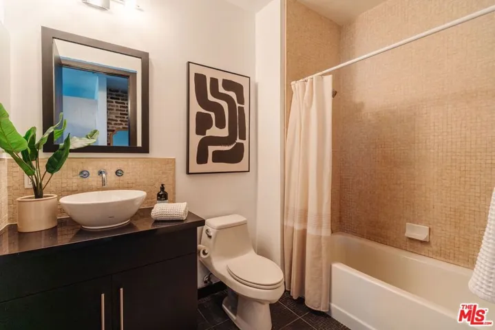 Nestled high on the 14th floor, the highly desirable end unit is a harmonious blend of modern elegance and urban sophistication. True urban dwelling with views of the bustling city down below. The open floor plan loft boasts floor-to-ceiling glass walls, tall gallery walls, 12-foot ceilings and warm dark hardwood floors. 2 unique brick accent walls and an East facing wall painted black. Natural light emanates throughout. The sleek kitchen features blue color cabinetry, white backsplash, granite countertops, stainless steel appliances and a new Bosch dishwasher. The bathroom features a soaking tub. Washer/dryer are included! Building amenities include 24/7 security/concierge, a rooftop sundeck, barbecue, a chic bar with panoramic downtown views, a resident club room, gym and a helicopter pad. 1 unassigned parking space included – in the building with a direct elevator bank to the 14th floor as well as the lobby.Located directly above the 7th Street Metro Station, enjoy the best of urban dwelling at your doorsteps. Walk to the action at Crypto.com Arena or LA Live. Enjoy the best of food and beverages at Javiers and Joyce. Across the street from the Bloc and Joeys. Whole foods is a stone’s throw away and the Broad Museum is just a few blocks away. Enjoy rich and diverse dining, world class museums and tons of entertaiment options. Truly, the best location in Downtown L.A.