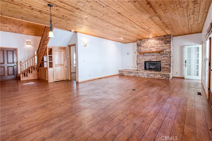 Nestled back from the street, this Eagle Mountain Estate Home sits on a large lot ideally situated to be a tranquil retreat from the hustle and bustle of city life. Custom built from the ground up in 2005 by original owner. Wrap around covered deck. Wood laminate floors throughout. Carpet in bedrooms and stairway. Spacious ground floor primary suite with walk-in closet leading to a sunroom where one can observe the natural wonder this lot has to offer. Well appointed kitchen with island, and additional sink next to oven. Open to Family/dining room with decorative wood burning oven to add a touch of classic charm to this living space. Large living room with fireplace and high ceilings. Laundry area on ground floor. Oversized 2 car garage with long driveway. Upstairs there are 3 bedrooms, one with private patio. Lots of storage space. Loved for many years by one owner. Ready for a new owner to spruce it up & make it their happy place for many years to come.