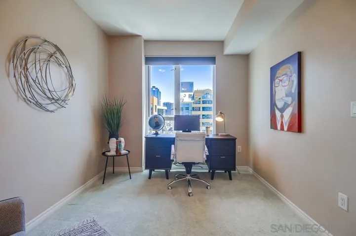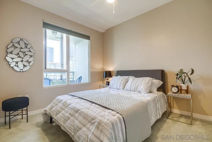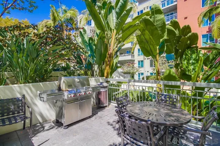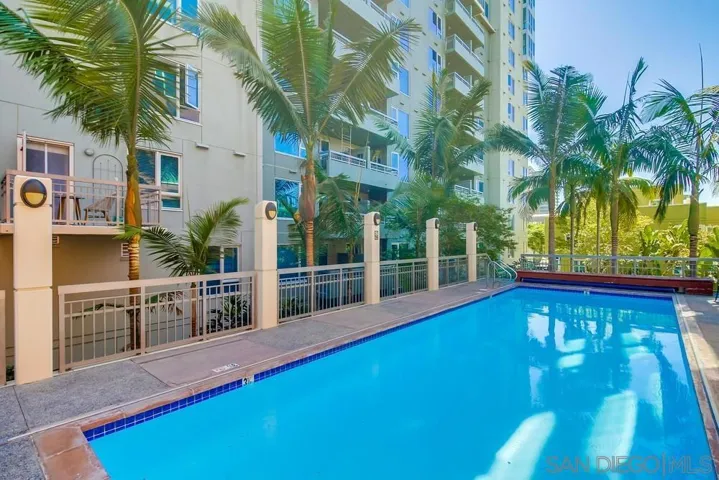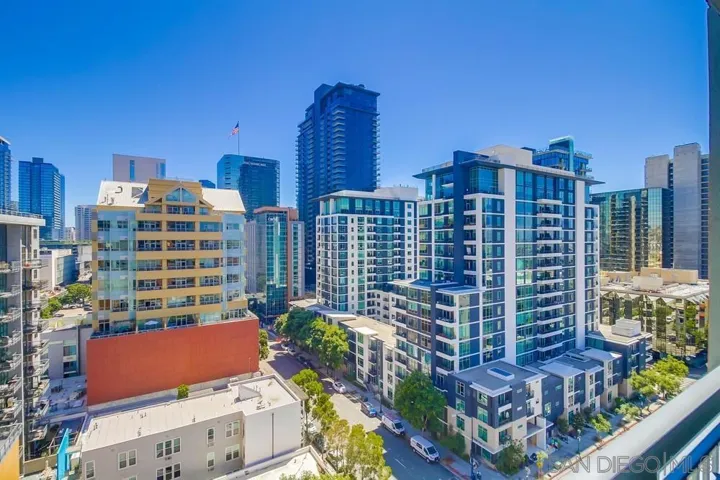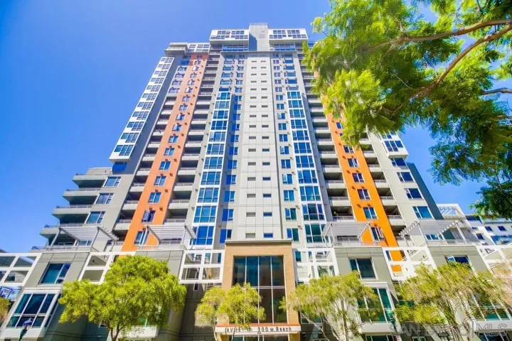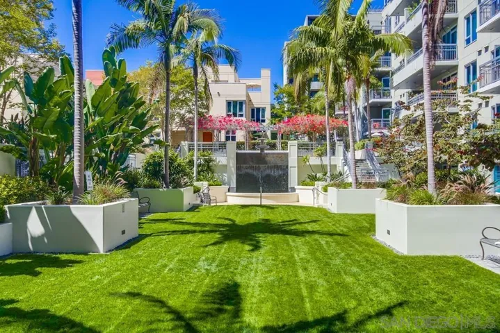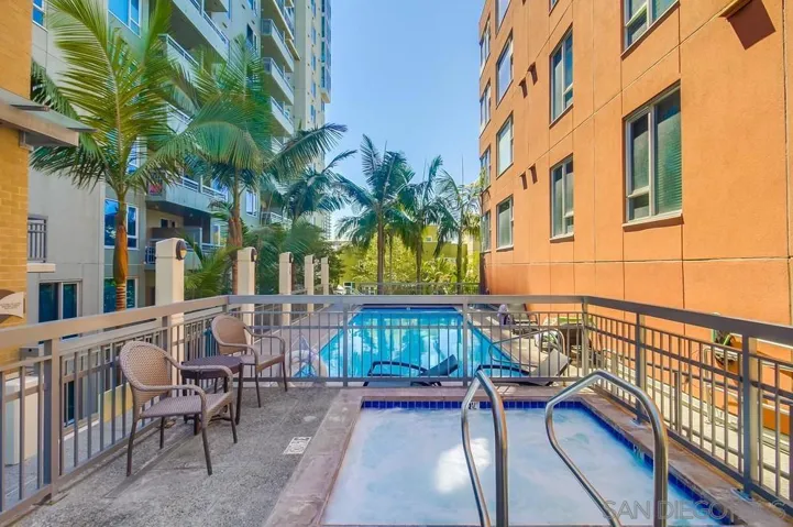 Welcome to La Vita in the heart of Little Italy! This south-facing and private, 2BR/2BA condo features an open floor plan with city and water views. Features include balcony, fireplace, ample closet space and great natural light. Freshly painted, new HVAC installed August 2024, in-unit washer/dryer and 2 parking spaces. Cordless shades in bedrooms and remote roller shade in living room. Pantry closet and extra storage. Both bedrooms have en suite baths. Move-in ready! Enjoy resort-style amenities ~ pool, fitness center, BBQ areas, clubhouse room, secure bike storage and a large, lush courtyard with a waterfall. Just steps to an abundance of top restaurants, coffee spots and shops. Blocks to scenic waterfront, Petco Park, the airport, convention center and more.