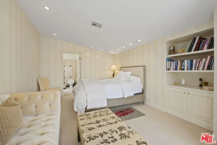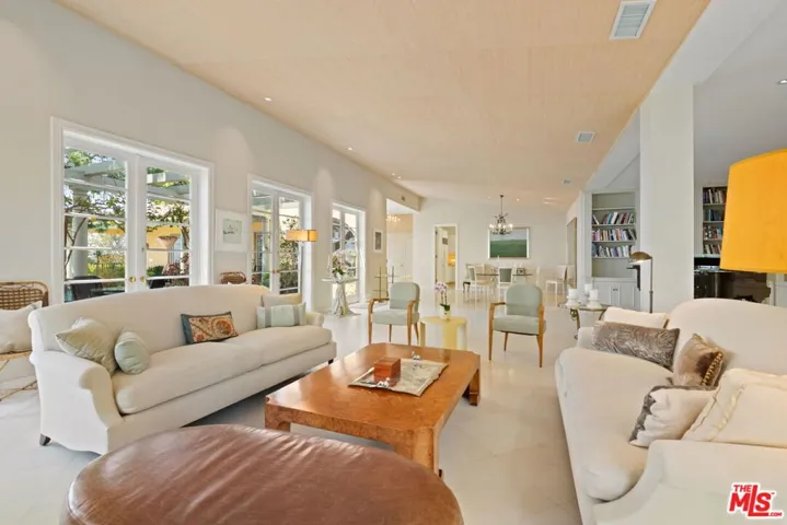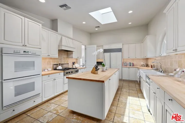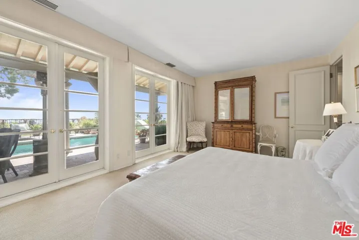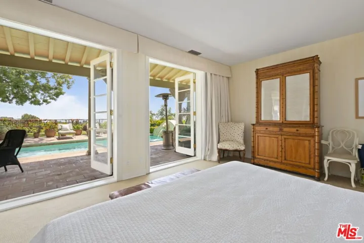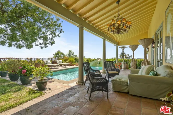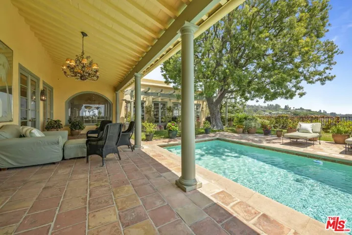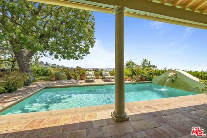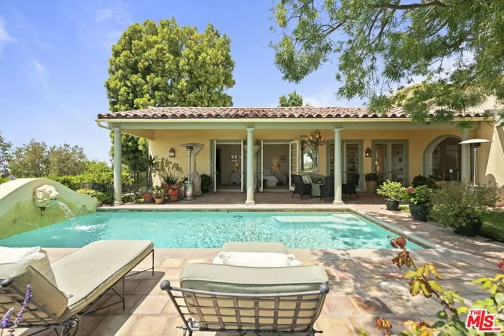 Secluded European Villa Style 4 bed/4.5 bath on private cul-de-sac in the desired Crest Streets with breathtaking panoramic views from downtown to coastline. Enter grand foyer with large arched windows and openness overlooking backyard greenery and city views. Open floor plan filled with natural light throughout, with spacious living and dining rooms that included vaulted ceilings, fireplace, custom built-ins and wall of French doors opening to magical backyard with tiled patios, mature landscape, relaxing sunny pool with water feature and endless views. Gourmet kitchen off dining room with butcher-block countertops, center island, double ovens, Viking gas range with grill, large pantry off kitchen and charming breakfast room. Just off of the entry area is an inviting den/office with fireplace and French doors to backyard and leads to separate wing with beautiful primary suite with French doors overlooking pool, double custom walk-in closets and marble finished primary bathroom with dual basins and separate spa bath and shower. 3 additional bedrooms, all with en-suite updated bathrooms. 2 of the bedrooms include French doors to private tiled balconies with stunning city views. Additional features include honed marble flooring, multi-zone skylights throughout, ac/heat, direct access garage, inside laundry room with storage off kitchen. Close proximity to world-class Beverly Hills and West Hollywood restaurants and retail. A truly unique opportunity that offers a tranquil retreat just minutes from the city.