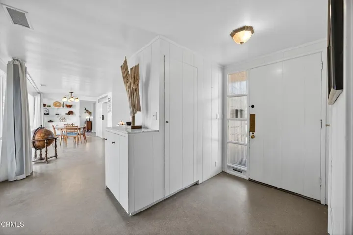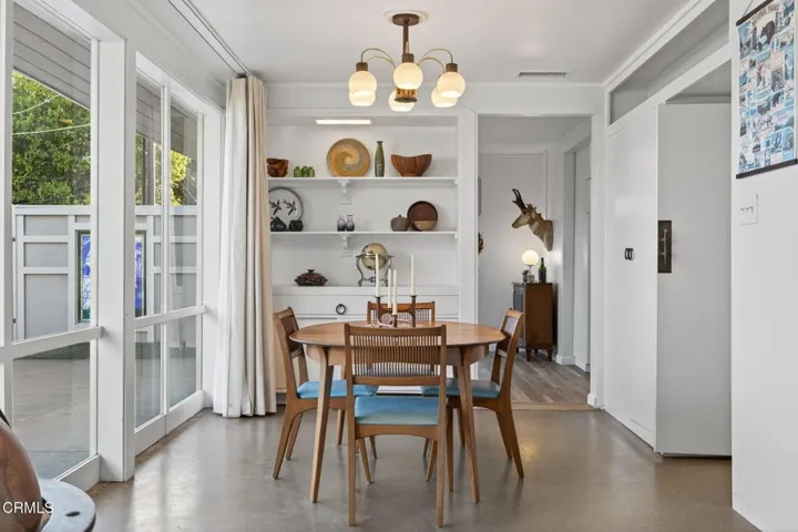 Step into a timeless Mid-Century Modern retreat designed by noted California architect Randolph Chalfant Head. Built in 1948, this single-story residence captures the essence of post-war modernism with clean lines, natural materials, and effortless indoor-outdoor flow.Expansive picture windows flood the living and dining spaces with natural light, while original built-ins, custom shelving, and warm wood accents highlight Head’s thoughtful craftsmanship. The remodeled kitchen melts perfectly into the the dining area and bonus room, just off the lanai. The open layout offers three bedrooms, 1 1/2 bathrooms plus the bonus room off the kitchen .This architectural gem pairs mid-century authenticity with modern comfort all while being located in one of Ventura’s most sought-after areas, the Cunnane neighborhood. These blocks were named after Dr. Thomas Cunnane, a beloved local physician who served Ventura County starting in 1899. This single-level home is set on a spacious 7,405 sq ft lot, with multiple patios, raised garden beds, and a detached garage–ideal for a studio, workshop, or future ADU. Off the garage is an outdoor shower, with it’s own water heater, ready to wash off the salty residue of nearby waves. Experience the serenity, simplicity, and design legacy of Randolph Chalfant Head–a rare opportunity to own a true piece of Ventura’s architectural history.