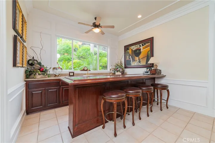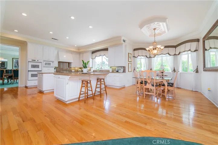 The formal living and dining rooms provide generous spaces for gatherings, while the family room is equipped with a custom-built-in entertainment center and is seamlessly connected to the large open kitchen, breakfast nook, a couple of cozy conversation sitting areas, and a gorgeous wet bar with a table for wine tasting.