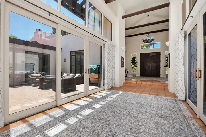California Santa Fe Elegance with Hillside Grandeur Welcome to a true sanctuary of style and scale this single-story architectural estate blends the soul of Santa Fe design with unmatched privacy and panoramic views, all set on over 2.16 acres of Poway’s most scenic hillside.5,382 of beautifully crafted living space, home features 5 spacious bedrooms each with en-suite full bathroom, 2 additional half baths—perfect for both family living & entertaining in comfort and privacy. The heart of the home, you’ll find soaring vaulted ceilings, grand wood columns, and a dramatic floor-to-ceiling Kiva fireplace anchoring the expansive main living area. A seamless flow between living, dining, and entertaining offers breathtaking views from every window—overlooking tree canopies, distant mountains, and vibrant sunsets.Step outside and you’re instantly transported to your own private resort, complete with a massive hotel-style pool, in-ground jacuzzi, and lush landscaping that blooms year-round.Recent major upgrades add immense value Recent major upgrades add immense value and peace of mind: Three new 4-ton AC systems, tankless waterheater, 86 owned solar panels While the home is already a masterpiece in form and setting, it’s being offered below market value to allow room for personal updates and customization—an extraordinary opportunity to shape your dream home without paying a premium for sum