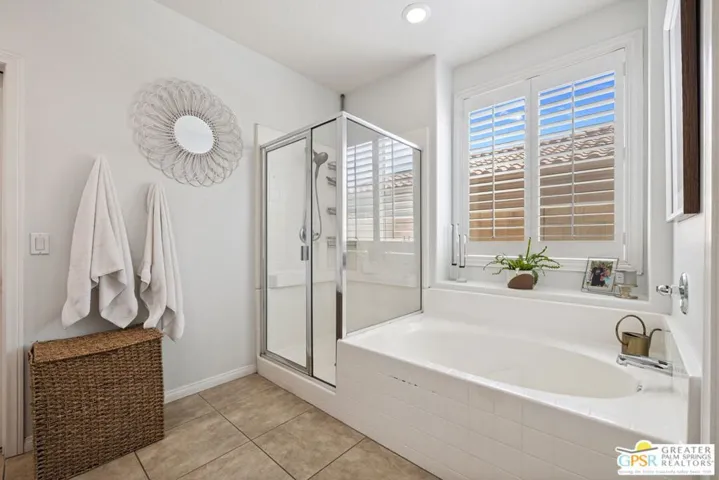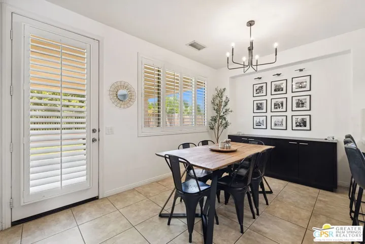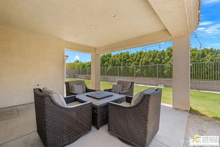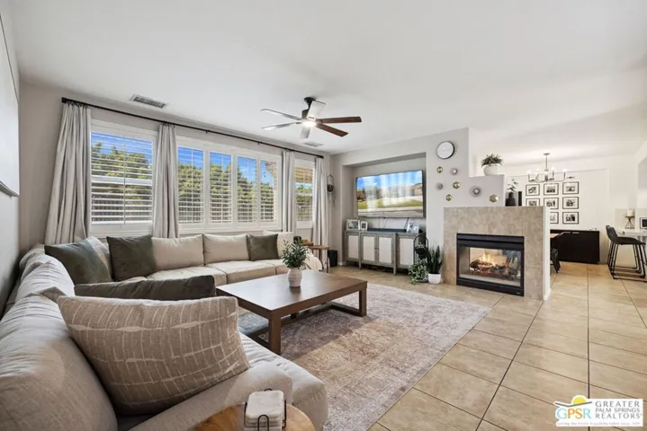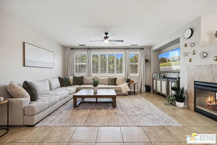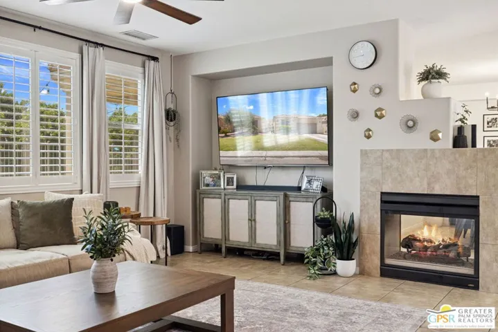 Welcome to The Desert Collection, a gated hideaway in desirable North Indio where style, space, and sunshine come together. This single-story stunner offers 4 bedrooms and 3.5 baths, including a detached casita, all wrapped in a layout made for easy living and effortless entertaining. Step through the private courtyard and into wide-open living and dining areas centered around a double-sided fireplace, an unexpected architectural touch that sets the tone. The kitchen is sleek and social with quartz countertops, counter seating, and smart updates throughout. Outside, the south-facing covered patio opens to a private yard with a built-in barbecue, creating the perfect backdrop for quiet mornings or lively evenings. The primary suite is spacious and serene, with direct backyard access, a walk-in closet, and a spa-style bath with soaking tub, dual vanities, and separate shower. Guest bedrooms two and three share a stylish Jack and Jill bath, and a powder room adds extra convenience. The detached casita in the front courtyard is the ultimate flex space or guest escape with its own private bath. Custom shutters, updated lighting, and a brand new app-controlled garage door system elevate the details. A dedicated utility room with built-ins adds function, while low-maintenance landscaping keeps things simple. Low HOA, no Mello Roos tax, and The Golf Club at Terra Lago just minutes away. Take the Matterport Virtual Tour to see how this one really lives.