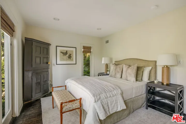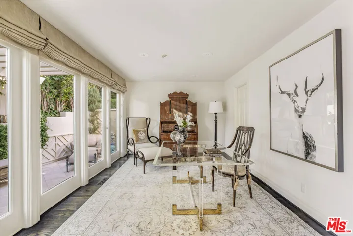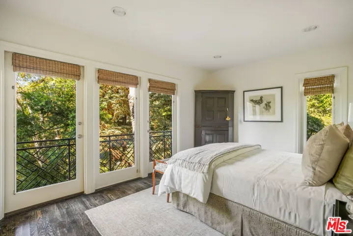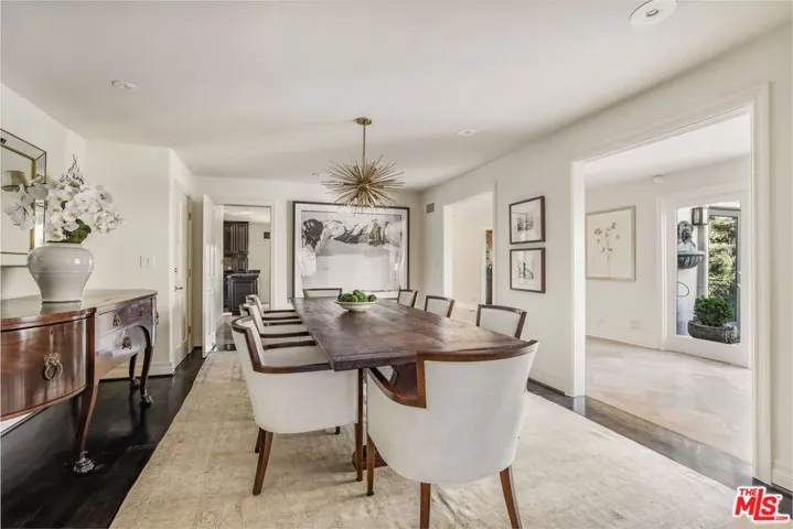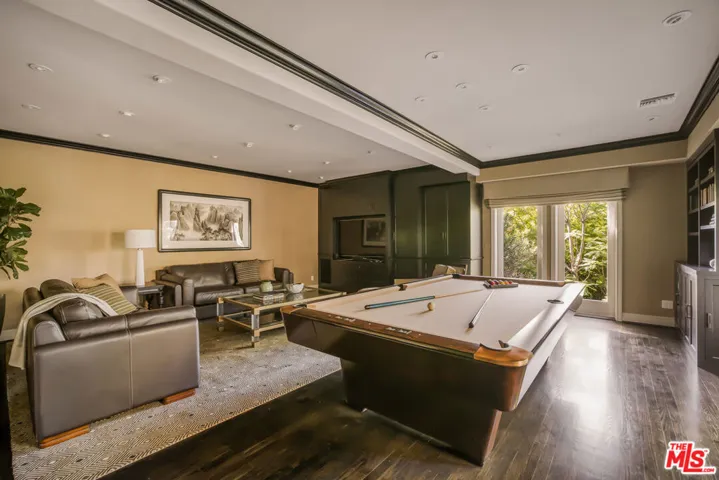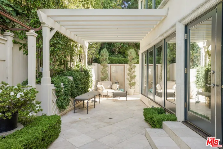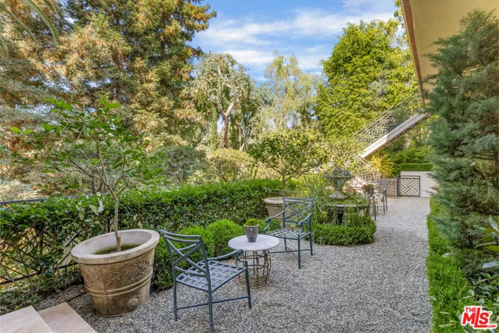 A timeless and turn-key residence in the City of Beverly Hills. Just one mile north of Sunset Blvd, this elegant home sits on a quiet cul-de-sac off lower Benedict Canyon. With five bedrooms and five and a half baths, the three-story home offers a flexible layout with ultimate privacy and wonderful city and mountain views. At the heart of the home lies a serene, garden courtyard visible from all the main rooms. Up a short flight of stairs from the foyer, the main floor is connected by a sunny and gracious hallway. Here you’ll find a spacious, sunken family room and wet bar, a well-appointed eat-in kitchen, a formal dining room, living room, office, powder room, and a staff bedroom & bath tucked away behind the laundry room. On the top floor is a primary bedroom featuring dual bathrooms, two walk-in closets, and two private balconies which incredible views. Another upstairs bedroom with en-suite bath is currently used as an office. The lower level is dedicated to entertainment with a spacious TV room and a pool table. Two more bedrooms (one currently used as a gym) and a full bathroom with a steam shower complete this level. Outdoors, you’ll find a beautifully landscaped courtyard, offering private space for relaxation, entertaining, and dining. A two-car garage, walk-in security gate, and locked gardener entrance offer ultimate security. This Beverly Hills classic is the perfect blend of timeless elegance and modern comfort.