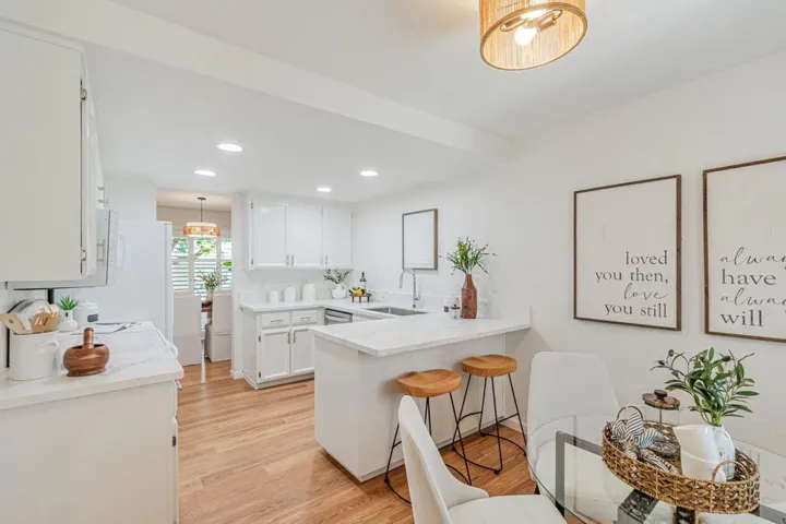 Beautifully Updated 3BR Townhouse with Modern Upgrades Light-filled 2-story townhouse with 3 bedrooms, 2.5 baths, and a spacious floor plan featuring a soaring living room ceiling, a cozy wood-burning fireplace, and fresh interior paint. The updated kitchen includes painted cabinetry, quartz counters, new dishwasher, sink and faucet as well as new laminate flooring extending into the breakfast nook. Enjoy the private patio with deck flooring and fence lighting, ideal for entertaining. Upstairs, the primary suite offers a walk-in closet with organizers and a remodeled en-suite bath. Two additional bedrooms share a full hall bath; a half bath and laundry area are downstairs. Additional highlights include central A/C, dual-pane windows, a 2-car garage with epoxy floors, built-in cabinets, Wi-Fi-enabled garage door and cyber lock, as well as drop-down attic storage in both the garage and second floor. The home is equipped with RJ45 Ethernet in all bedrooms and the living room, and is located in a pet-friendly community. Close to 20-acre Edenvale Gardens Park, Hayes Mansion, VTA Snell Station, and with easy access to Highways 85, 87, 280, 680, and 101.