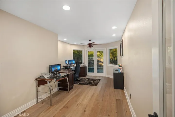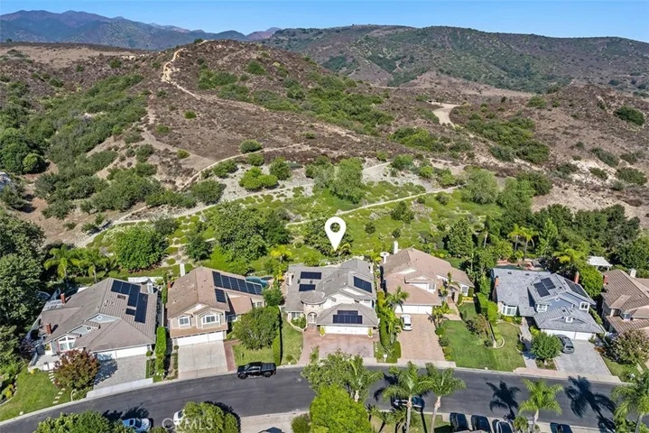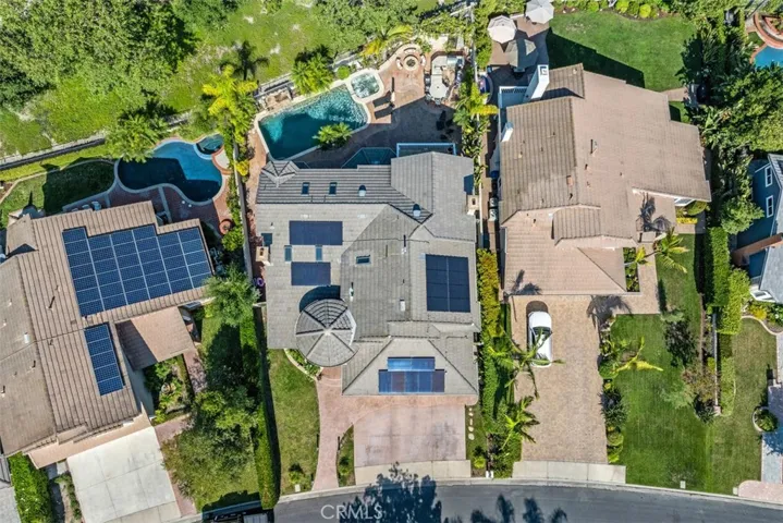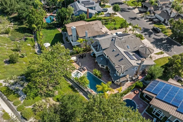 Experience luxury living at 8 Eastridge, a distinguished home with a private backyard oasis in the sought-after Oakmont community of Coto de Caza. Situated on an expansive lot, the property features a sparkling pool, spa, built-in BBQ, and plenty of outdoor space for both relaxation and entertaining. This unique residence offers a highly desirable floor plan with 5 bedrooms plus an office and 3 bathrooms. The open-concept design is enhanced by high ceilings and multiple skylights that bring in an abundance of natural light. Upon entry, a formal living room welcomes you with a full wet bar, accompanied by an adjacent office or bonus room enclosed with French doors. The gourmet kitchen is outfitted with stainless steel appliances, a built-in gas range, double ovens, granite countertops, and a breakfast nook. It flows seamlessly into the family room, with a formal dining area nearby, perfect for hosting. A convenient downstairs bedroom and full bathroom offer flexible living arrangements, and the office can easily be converted into a sixth bedroom with the addition of a closet. Upstairs, the serene primary suite includes a well-appointed bathroom with dual sinks, a vanity area, soaking tub, and separate walk-in shower. Three additional spacious bedrooms and another full bathroom provide ample space, with one of the bedrooms offering access to a private balcony overlooking the backyard. Outside, your tropical oasis includes a pool and spa with a waterfall feature, outdoor shower, fire pit, and a built-in BBQ with counter seating, ideal for al fresco dining. Additional upgrades include newer flooring and garage door, an upgraded spa with jet booster pumps, owned solar panels, and Bluetooth-enabled backyard speakers. Enjoy access to the many amenities offered by Coto de Caza, including the Golf and Racquet Club (optional memberships available), equestrian facilities, scenic hiking trails, and more. Don’t miss the opportunity to own this exceptional property that blends comfort, space, and California lifestyle.