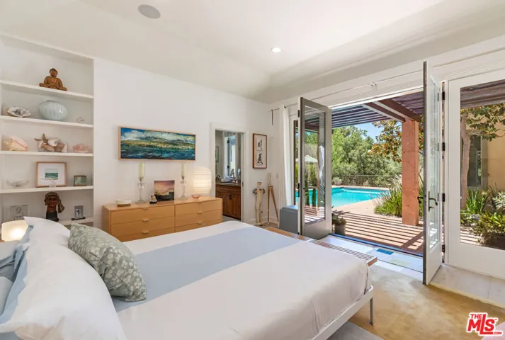 This spectacular Mediterranean home surrounded by the Santa Monica Mountains is perched on 2.8 acres and is located on an exclusive gated street in Monte Nido with only two other luxurious estates. This magical neighborhood is a hidden gem with a small-town feel, community events and friendly atmosphere. Perfectly situated near Malibu State Park, Back Bone Trail and minutes to Malibu beaches, Calabasas shops and dining, and the 101. Here, you will enjoy nature, mountain views for miles, breathtaking sunsets, soaring hawks, mornings with a sea of clouds pouring in over the mountain-tops and the trickle of a seasonal stream. The property features a heated swimming pool and hot tub, view terrace, mature trees including oaks, California sycamores, orange and plum. A beautifully landscaped courtyard welcomes you in with a fountain and fishpond. The doors open to high ceilings with dazzling Murano hand blown glass lights and soothing light hard skived white oak hardwood floors. An inviting living room offers a peaceful seating area for relaxing and enjoying the mountain views with glass doors opening to a large terrace with seating and dining areas. Inside offers an elegant dining room with windows to the views and stunning hand blown light fixtures reminiscent of the convergence of sky and ocean in Venice. A light and bright kitchen overlooks the mountains and terrace with BBQ, and features an island, Thermador appliances, and is open to a seating area with surround sound television. Retreat to the first floor primary suite with views of the sparkling pool and hot tub. The spa-like bathroom offers a separate tub, shower, and walk-in closet. A sizable second bedroom/office and full bathroom is also on the first floor. Upstairs you will find three additional guest bedrooms all with spectacular views and two full bathrooms, as well as the laundry room and bonus storage room. The home has been meticulously upgraded with Carlisle wide-plank solid oak hand-skived hardwood floors, new Lennox Signature HVAC system, Farrow and Ball Paint through-out, new AV system with TVs, speakers and control system, new pool equipment and cover, wine refrigerator, Wilson Repeaters, whole house water filter, tankless heater and the list goes on! Two car attached garage and central vac. Within the award winning Las Virgenes School system and close to Viewpoint and Muse private schools, and Pepperdine University.