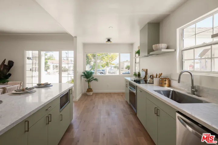 Experience Serene LA Living and income earning potential in this tranquil and inviting two-on-one lot property. Discover an exquisitely redesigned Spanish Style home with the front house featuring 2 bedroom 2 baths (approx. 1,448 sq ft) where every renovation has been curated to elevate both its style and the quality of your everyday living and a brand new, ground up constructed second home that is a 2 bedroom 1 bath permitted ADU (approx. 1,200 sq ft) with it’s own address, 1824 W 78th St. The front residence blends timeless charm with modern luxury, offering new hardwood flooring, large picture windows emanating natural light, an open-concept layout, decorative fireplace, formal dining area, chef’s kitchen, separate laundry room and spa-inspired bathrooms. The spacious primary suite includes an ensuite bathroom and a generous walk-in closet. Just off the back porch, a serene shared courtyard invites peaceful morning coffee or lively family gatherings. The brand-new, permitted ADU is thoughtfully designed for privacy and versatility ideal for guests, income, or multigenerational living. Enter through a private front door into a bright living space featuring luxury vinyl plank flooring, a stylish open kitchen with bar seating, and a cozy dining nook. Both bedrooms include large closets and can flex as offices, guest rooms, or creative spaces. A dedicated laundry room adds convenience, while French doors lead to the shared courtyard, creating a seamless indoor-outdoor connection. This gorgeous property also includes solar-ready electrical panels, EV charging capability, rainwater recapture systems, Ring security, central HVAC, and new kitchen appliances in both homes. Exterior upgrades include a remote-controlled security gate, new vinyl fencing, Saltillo tile, and custom handrails. Located in the sought-after Manchester Square neighborhood just minutes from M’Dears Bakery and Bistro, SoFi Stadium, the Kia Forum, Intuit Dome, USC, LAX, and more – this is a rare opportunity to own a beautifully curated, income-generating estate that offers style, flexibility, and long-term value.