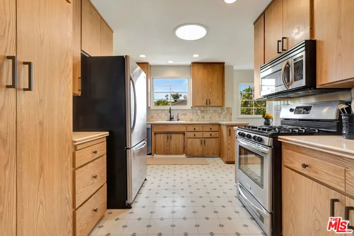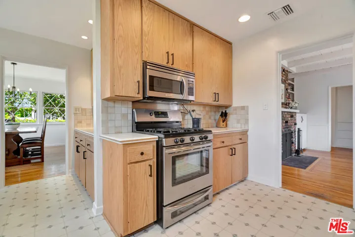 Looking for New owner(s) for a beloved home of the past 31 years, now making its debut on the market. This extremely well-maintained, classic and turnkey 1951 Valley Ranch sits on a corner lot at the end of a cul-de-sac in one of Sherman Oaks’ most desirable pockets. This captivating home has it all, 1,722 square feet of spacious and flexible living that has been tastefully updated with its original layout intact. Nestled on a freshly landscaped wraparound cottage-style yard, the pollinator garden attracts finches, hummingbirds, butterflies, and even a resident bunny. Bonus: long-time friendly neighbors add to the special character of this block. The home’s terrific flow offers a full circle walk-through: a welcoming light filled living room with two oversized picture windows opens to a sun-drenched formal dining room with 180 views of the lush garden through wood-lattice double-hung windows. Original tongue-and-groove oak hardwood floors throughout. The expansive T-shaped kitchen has 32 cabinets, 14 drawers, a cozy eat-in nook, updated stainless steel appliances, and a Bosch dishwasher, perfect for cooking and socializing. Separate Laundry room with side-by-side LG washer/Dryer adds to ease of workflow from kitchen. The large family room, with private entry and remodeled en-suite bath, easily functions as a third bedroom. A separate wing offers two large bedrooms with generous closets, a beautifully updated main bath, floor-to-ceiling linen storage, and a walk-in storage room and the new 17 SEER A/C will easily maintain living comfort. The large backyard is a private retreat, complete with an extensive patio area including a lanai, newly rebuilt deck and a sparkling classic 1970s pool with original tile. Vacation at home, children, pets, and adults alike will love it here. There is a new dog run, a garden area beyond features a lemon tree and a storage shed. The full two-car garage offers built-in storage and ADU potential. With a 7,101 sq ft lot protected by Ring security system, the possibilities are plentiful. Location is everything, short distance to two Trader Joe’s, Pavilions, Gelson’s, the Fashion Square, LA Fitness, and Ventura Blvd’s countless shops and restaurants. Close to award-winning Kester Elementary, Van Nuys/Sherman Oaks Park is only 2 blocks away and it is full of playgrounds, pools, sports fields, and more. Whether you want to exercise, socialize, or unwind, it’s all within reach. Easy access to freeways and public transportation. Ideal for first-time buyers, those transitioning, or anyone looking for a forever home, this special property offers endless possibilities.