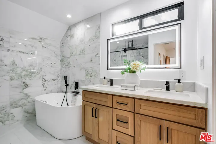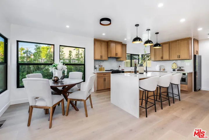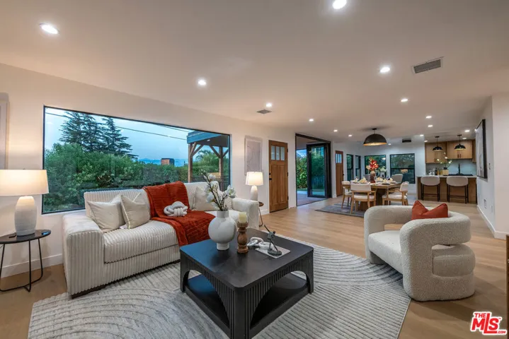 Welcome to 3744 Vineland Avenue, an exceptional, fully reimagined residence South of the Boulevard in the heart of Studio City. This stunning home has been completely reconfigured and remodeled from top to bottom, offering 5 bedrooms and 6 bathrooms across approximately 2,470 square feet of refined living space on a generous 7,628 square foot lot. Step inside to discover wide plank white oak hardwood floors throughout and an open floor plan designed for modern living. The expansive chef’s kitchen features top of the line appliances, kitchen nook, a large center island, quartz countertops, wine fridge, and custom pantry, seamlessly flowing into the formal dining and living areas. Oversized sliding glass doors open to a spacious covered deck, creating the perfect indoor-outdoor living experience.Upstairs, a versatile bonus room opens to a large terrace with sweeping views of the valley and surrounding mountains, ideal for work, play, or relaxation. The primary suite offers a luxurious retreat with a spa inspired bathroom and serene ambiance. Freshly landscaped grounds, a two car garage, and a prime location just moments from Ventura Boulevard’s shops, dining, and entertainment complete this impressive offering. A rare Studio City gem blending luxury, lifestyle, and location.