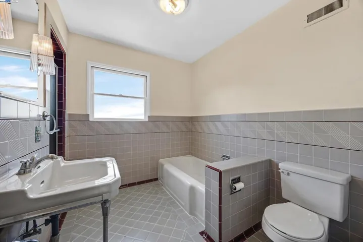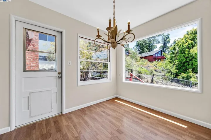5040 Pierpoint Avenue is located near the top of a cul-de-sac in Oakland’s desirable Joaquin Miller neighborhood. Come with a vision! This 2 bedroom, 1.5 bathroom home has a Boxwood lined entry, views from several windows, neutral paint, and hardwood floors beneath carpet. The grand living room includes a formal dining area; the living room features a large window and several additional windows allowing an abundance of natural light to enter the room. The kitchen has a partial view of the bay from the sink and a door that leads to the rear yard where a small deck and tiered yard that can be transformed into a lovely space to garden, enjoy meals, and relax. The interior of the home has character. The bedrooms are spacious; each has two closets. The primary bathroom has a tub and large free standing shower. The laundry room with sink and additional .5 bathroom are located on the lower level. The garage is attached. This charming home is conveniently located within minutes of Joaquin Miller Park, Chabot Space Center, the shops and cafés of Woodminster and Montclair Village. This home’s exceptional location offers convenient access to freeways and public transportation.