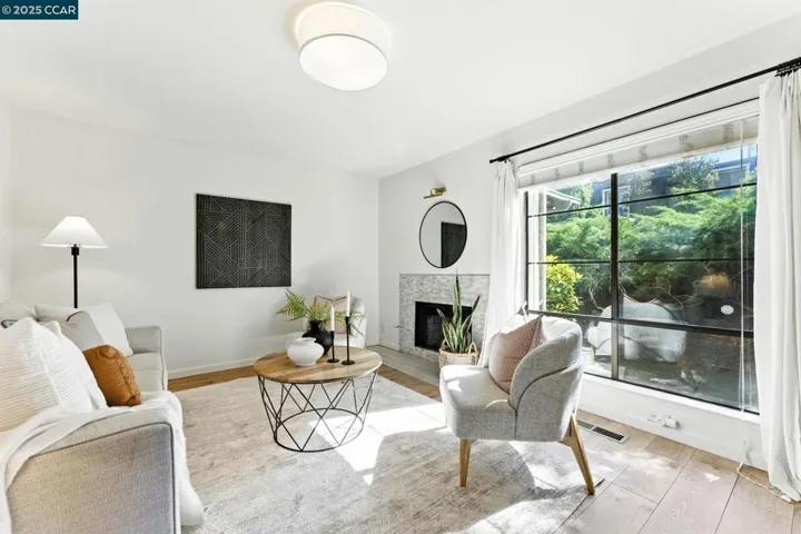 Tucked among the redwoods, this bright and airy townhouse style condo in Walnut Creek offers a private retreat with thoughtful upgrades and modern convenience. The main level features an open concept kitchen and dining area with stainless steel appliances, a gas stove, and beautiful cabinetry. From here glass doors open to a private entertainer’s backyard, perfect for morning coffee, al fresco dining, or evenings under the stars. An inviting living room with a fireplace creates a warm and welcoming space to relax and enjoy! Upstairs, two spacious bedrooms with generous closets are paired with a refreshed bathroom that includes dual sinks and modern finishes. A convenient in unit washer and dryer is located downstairs near the kitchen for everyday ease. Additional highlights include gorgeous flooring, central heating and cooling, assigned covered parking, ample guest parking, a custom built storage shed, and tranquil tree lined views. Community amenities feature a sparkling pool for relaxation and recreation. All within minutes of BART, I-680, Walnut Creek’s vibrant shopping and dining, and nearby parks and trails. Come see how this Walnut Creek retreat combines everyday comfort with an unbeatable location.