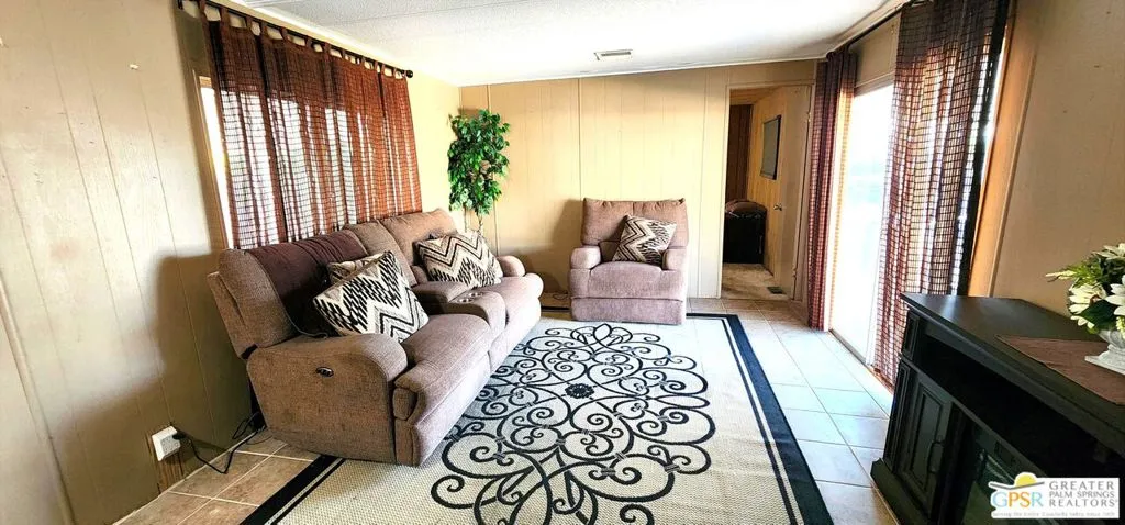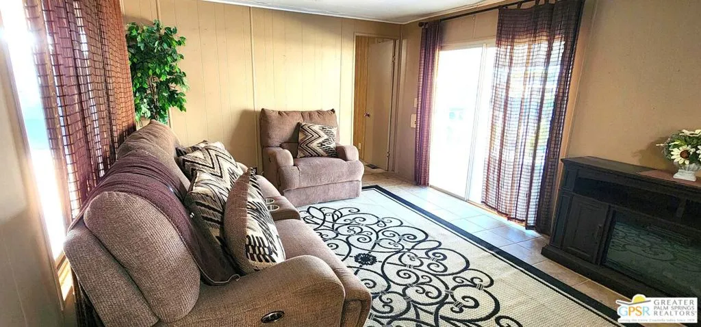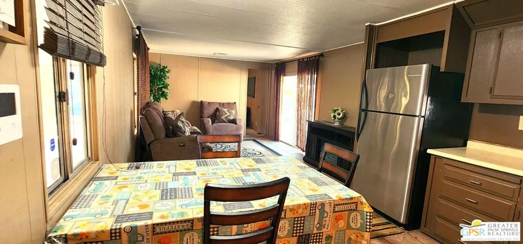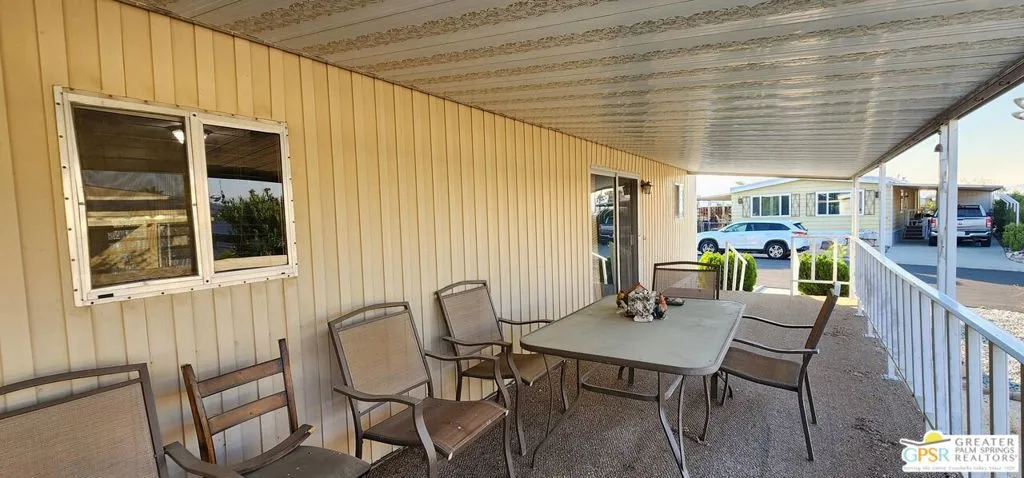 Discover an affordable gem in Desert Crest Country Club! This cozy and furnished 2-bedroom, 2-bath home offers 672sqft of easy-care living with peek-a-boo mountain views and a versatile covered patio for relaxing or entertaining. Enjoy the convenience of a covered carport and a handy washer/dryer located in the exterior shed. The home is move-in ready, yet offers plenty of potential to add your own personal touches. Ideal for buyers seeking value in an active 55+ community with resort-style amenities including a mineral spring pool, hot spas, golf course, and clubhouse. This inviting retreat won’t last long!