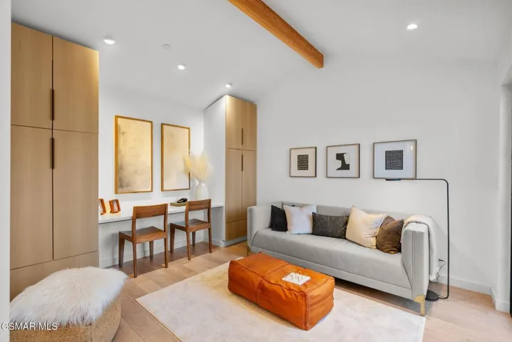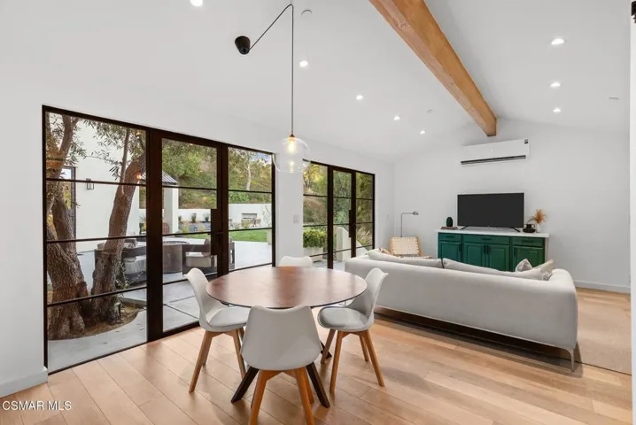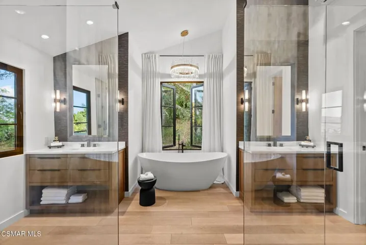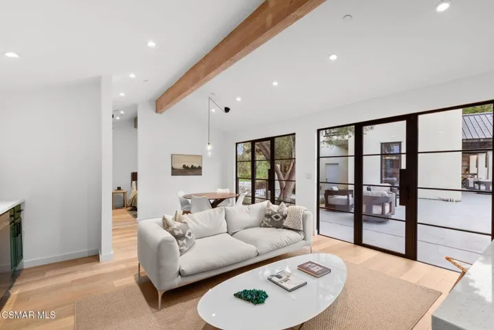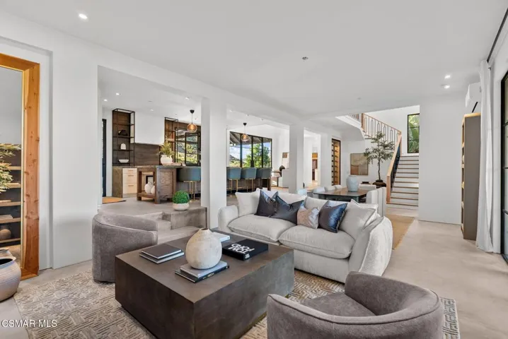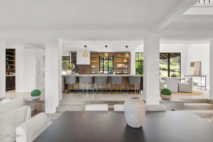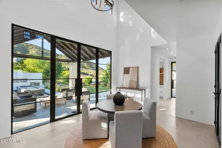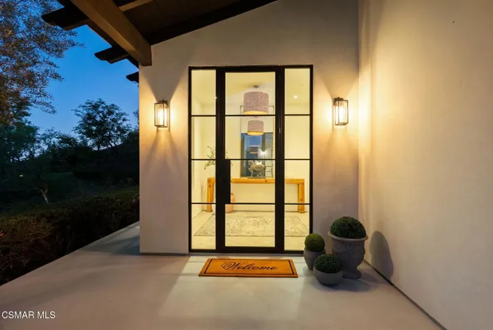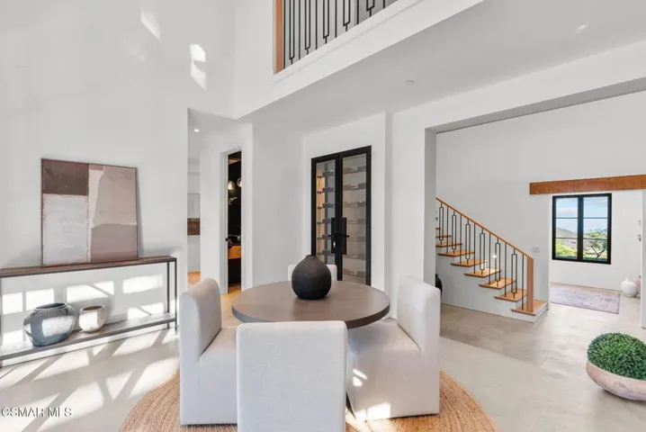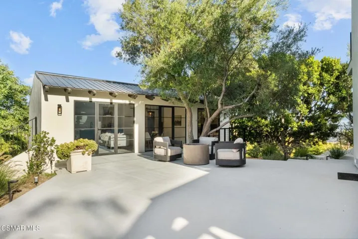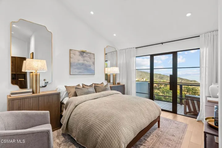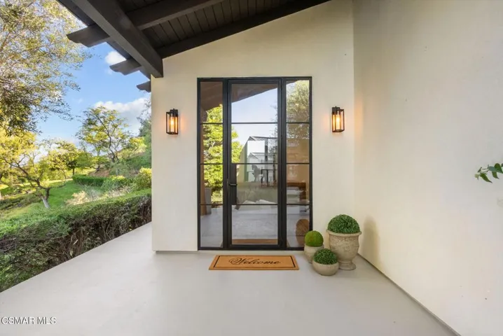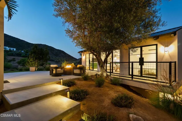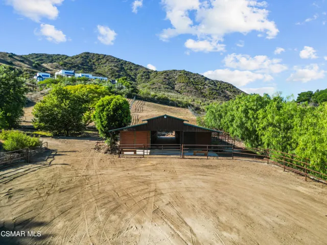Mulholland Canyon Ranch Perched high above the Malibu coast and canyons, Mulholland Canyon Ranch is a rare and stunning equestrian retreat offering awe-inspiring mountain and ocean views across approximately 3.26 serene acres. This beautifully crafted estate includes 4 bedrooms and 4.5 baths. A thoughtfully designed 3 bedroom, 3.5 bath main residence and a dreamy 1 bedroom, 1 bath guest house, blending modern luxury with rustic charm. Step inside to find soaring ceilings, concrete floors, concrete counters, striking steel framed doors and windows that bathe the home in natural light. Enjoy breathtaking views and fresh breezes through expansive glass openings that blur the line between indoors and out. The luxurious primary suite features dual showers, a spa-like soaking tub, and a private balcony that sits high above the lush, manicured grounds – framing a gorgeous view of the ocean. Each bedroom offers a private en-suite bath and access to a shared balcony. The family room features built in closets, a dedicated desk area and its own private balcony with gorgeous views. Outdoors, indulge in a resort-style setting with covered seating, a sleek wet bar, outdoor shower and a tranquil reflection pond accented by a cascading waterfall. The lush, mature landscaping showcases stately olive trees and a vibrant tapestry of foliage, creating a serene and private retreat. Designed for the ultimate Malibu lifestyle, the property features versatile equestrian facilities including a lighted eight-stall barn with a tack room, multiple turnouts, two large corrals and a riding arena. A large covered and fenced structure offers flexible use as a stylish chicken coop, dog kennel, or creative outdoor space. With its celebrity pedigree and a park-like setting that is peaceful and private, this fully fenced and double gated property is the ultimate blend of nature, luxury and lifestyle, offering a rare opportunity to own a true Malibu retreat.
