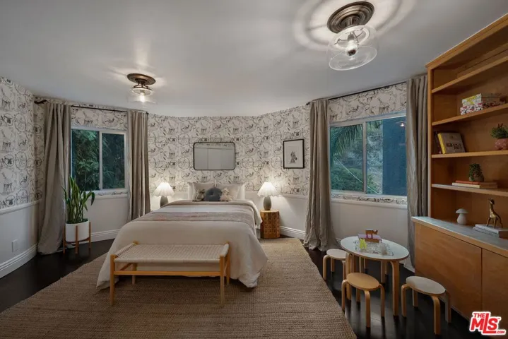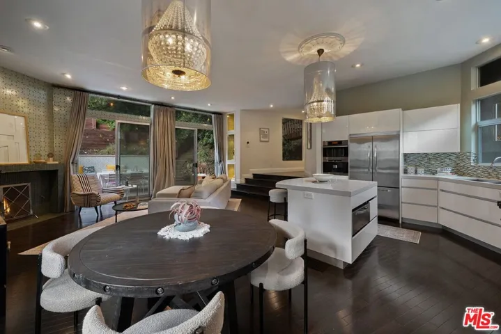 Elle Decor dubbed it “The Swankiest House in Hollywood” and it’s easy to see why. Originally completed in 1978 by renowned architect Gary Gilbar and later reimagined by celebrity designers Woodson & Rummerfield, this modern masterpiece is a glamorous jewel box of style and sophistication. Behind its sleek exterior lies 3 bedrooms, 2 baths, and 1,978 sq ft of impeccably curated living space. The dramatic living and dining areas feature soaring ceilings, a statement fireplace, bold Florence Broadhurst wallpaper, and walls of glass that open to a chic entertaining deck. Outside, a tranquil terraced garden awaits, complete with a 9-foot waterfall, raised-bed vegetable garden, and Malibu lighting for magical evenings.The designer kitchen is as functional as it is stunning, boasting bi-fold lift-up cabinets, a Viking range with warming drawer, Fisher & Paykel dual dishwasher, and a built-in Miele coffee system that serves Nespresso on demand.The main level also offers a stylish guest bedroom and a fashion-forward bath. Upstairs, the spacious primary suite delivers treetop views, a high ceiling, cozy fireplace, sitting area, and a custom walk-in closet. The remodeled en-suite bath includes a dual vanity, dressing table, subway-tiled tub surround, and chic tile flooring. The third bedroom charms with custom wood bookcases and Anthropologie wallpaper.