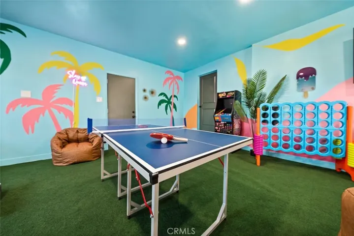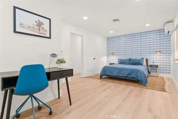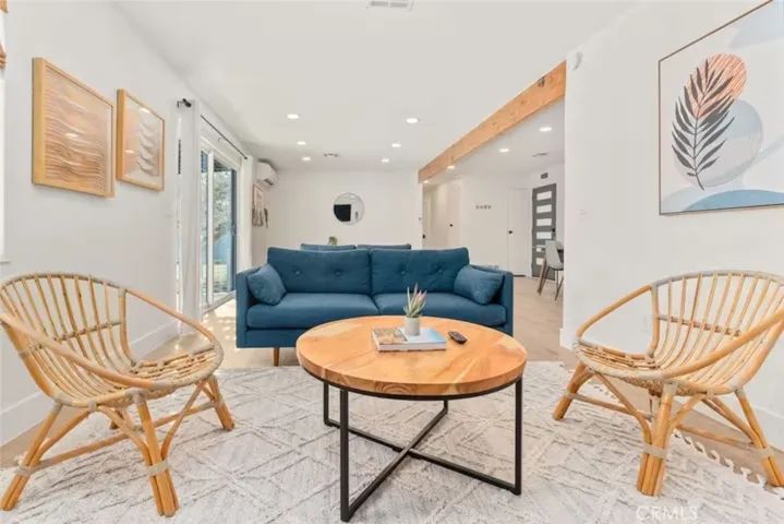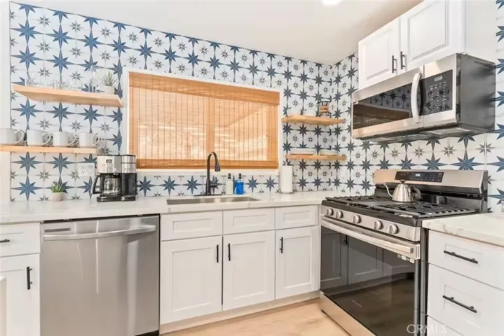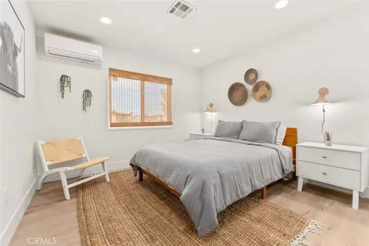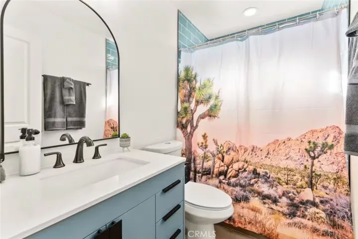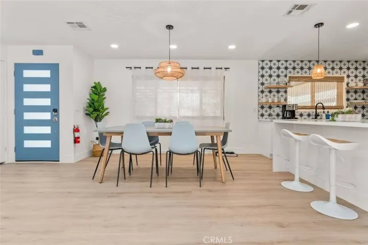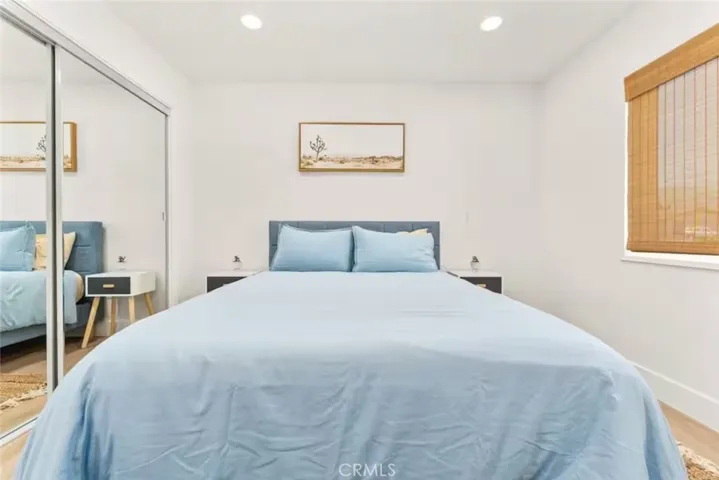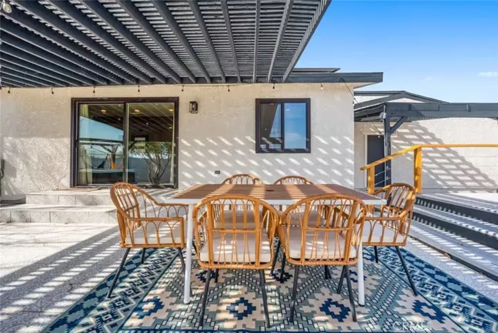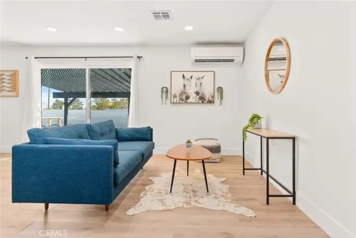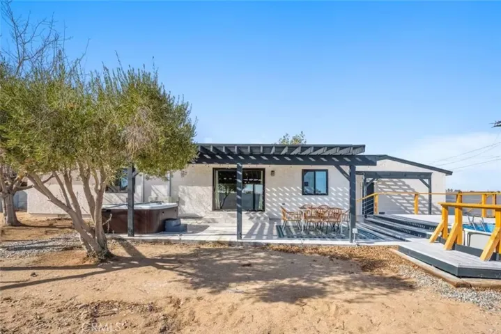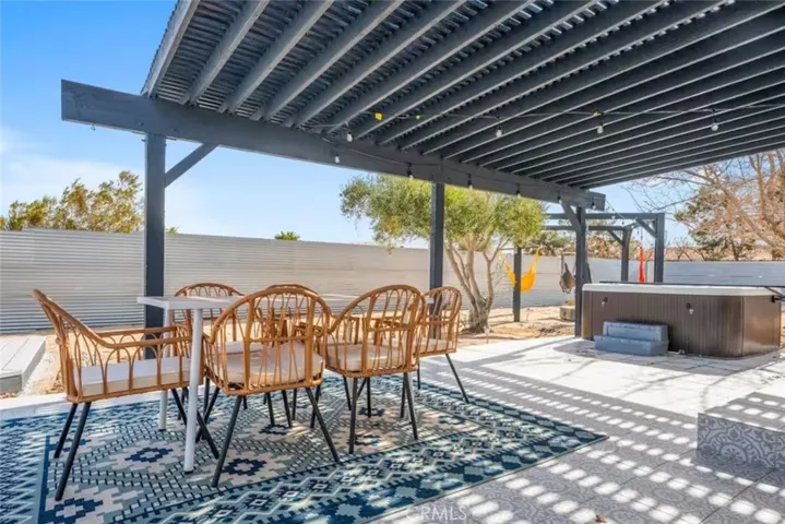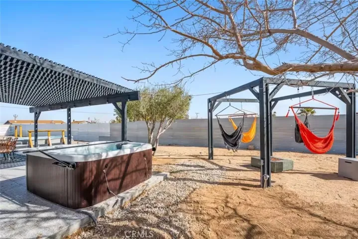 OASIS HOUSE: Meticulously Remodeled & Updated home, including new kitchen cabinetry, quartz countertops, counter-to-ceiling tile backsplash and ALL new appliances. Engineered flooring throughout. Exposed beam in living area, provides the perfect organic aesthetic touch. Both bathrooms are also fully upgrades, with new vanities and floor-to-ceiling custom tile work in the luxurious walk-in showers. The beautifully finished bedrooms feature sublime design details. The garage has been transformed into the ultimate lounge. Entire house is updated with zoned ductless mini-split AC/Heating units for efficiency. Utility room features new washer and dryer. The fully-fenced, private backyard is perfect for children, pets, family and friends and features a cowboy pool, hot tub, fire pit + pergola w/ hanging hammock chairs for socializing and stargazing. Picturing yourself relaxing underneath the palm trees. The legendary 29 Palms Inn is only a short distance away for fine dining and only a short drive to the main entrance of Joshua Tree National Park for hiking and outdoor activities.